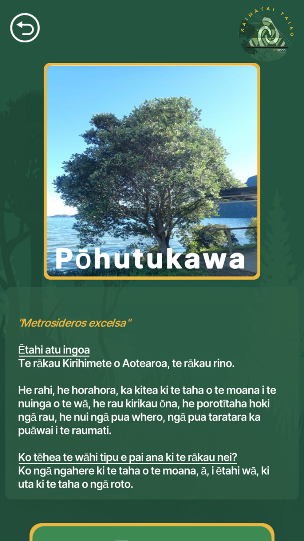 ‘Mātaihia Te Heka!’ Augmented Reality app technology that brings the tree (branches) to life and allows the user to explore, search for and identify myrtle rust on different myrtle species.