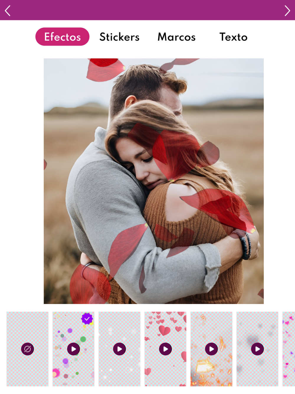 Effetti speciali: dà vita alle tue foto con animazioni scintillanti, cuori galleggianti ed effetti magici.