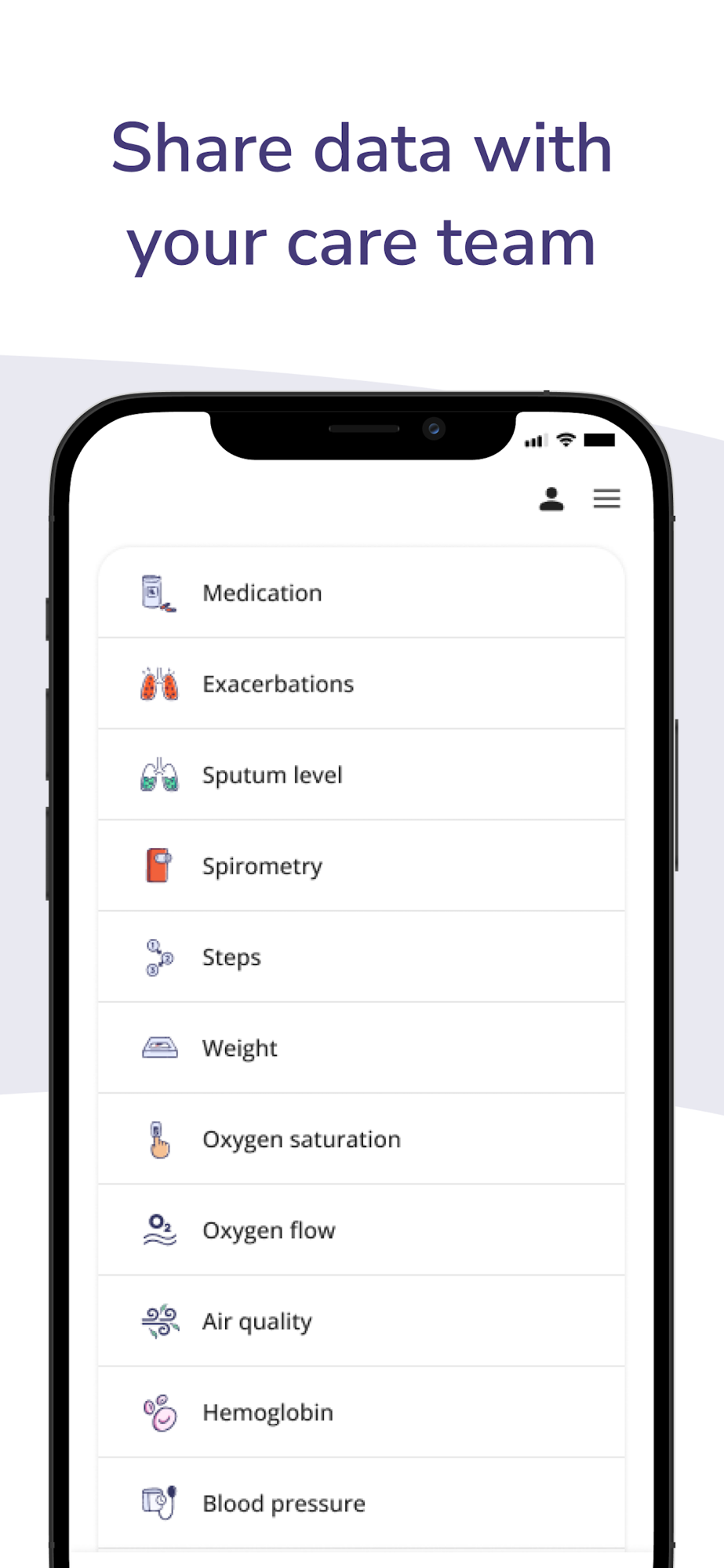 KEY FEATURES: - Sync with connected health devices e.g. spirometer, pulse oximeter - Track medication usage and get reminders.