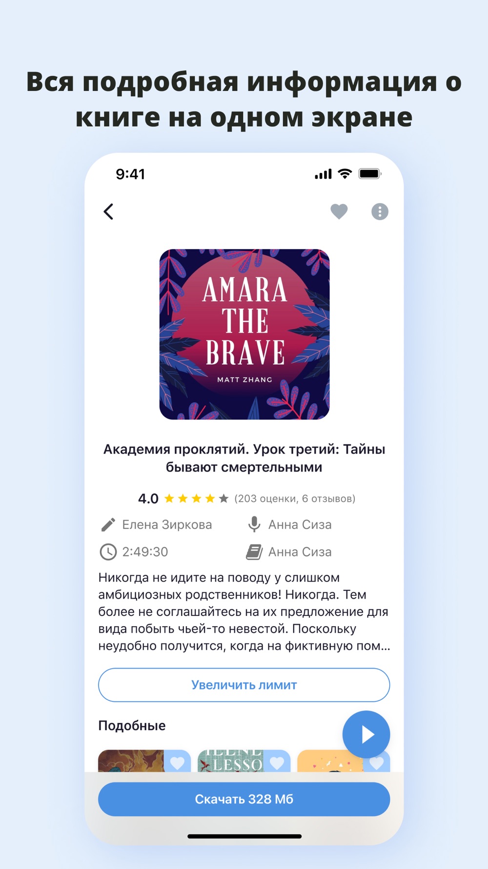 - Офлайн-доступ: загружайте книги и слушайте в дороге.