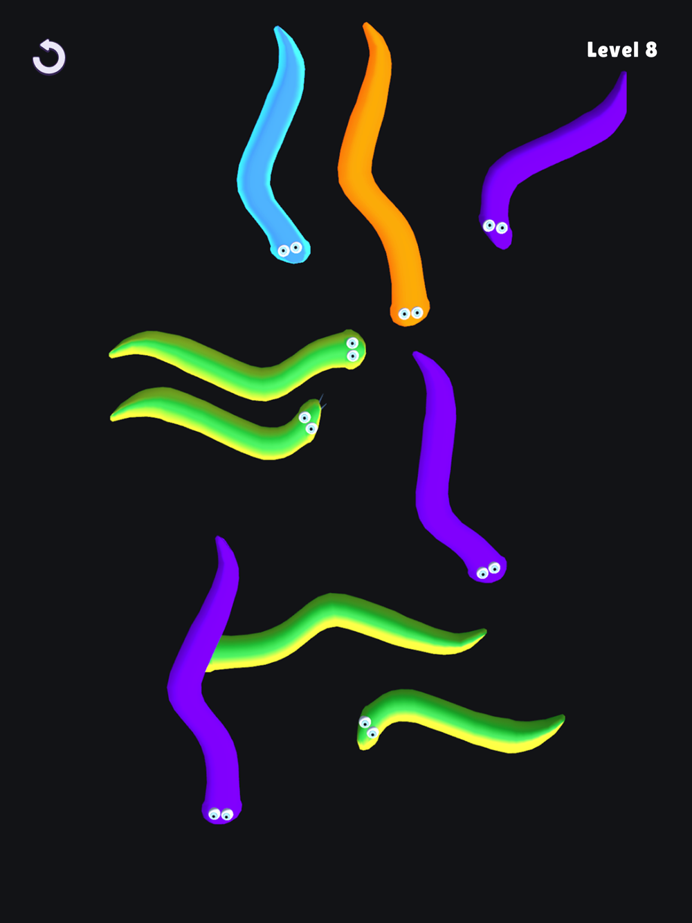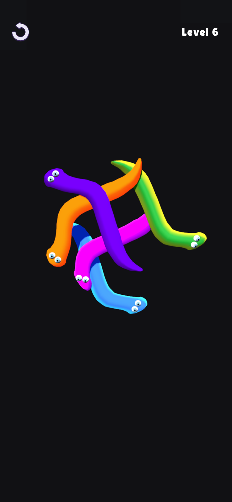 Tap the crazy tangled snakes to sort them out of the screen. You will win once the last snake has left the screen. Solve all the levels to call yourself a genius!