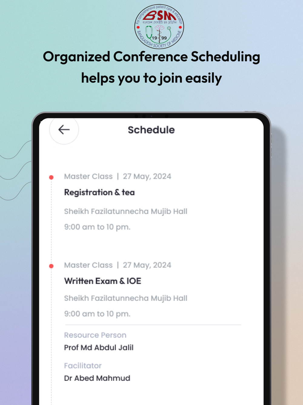 Bangladesh Society of Medicine is an organization of Medicine specialists of Bangladesh. The Society established for ensuring the rights and benefits of Medicine Specialists and teaching the graduate and post graduate students so that they will be able to provide comprehensive healthcare service to the people of Bangladesh.