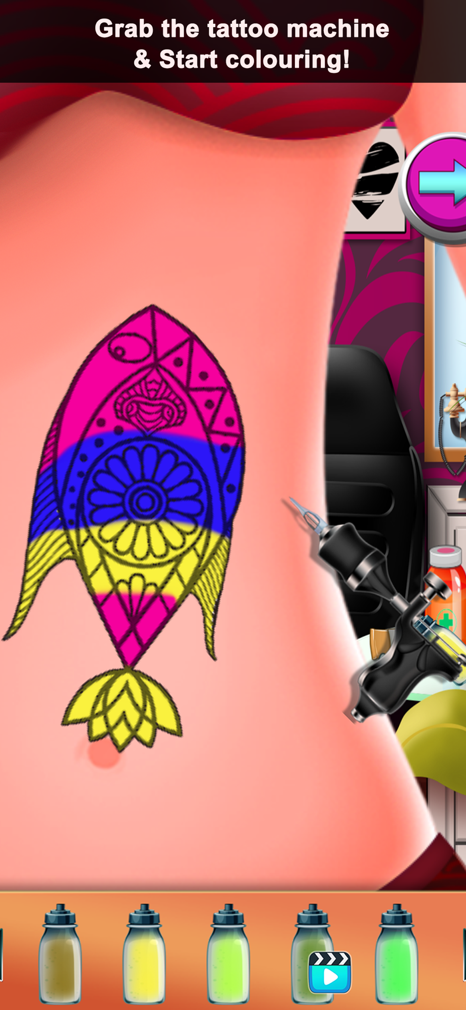 Ink Your Masterpieces: Put your tattooing skills to the test and bring your designs to life. Choose colors, needles, and techniques to ink flawless tattoos.