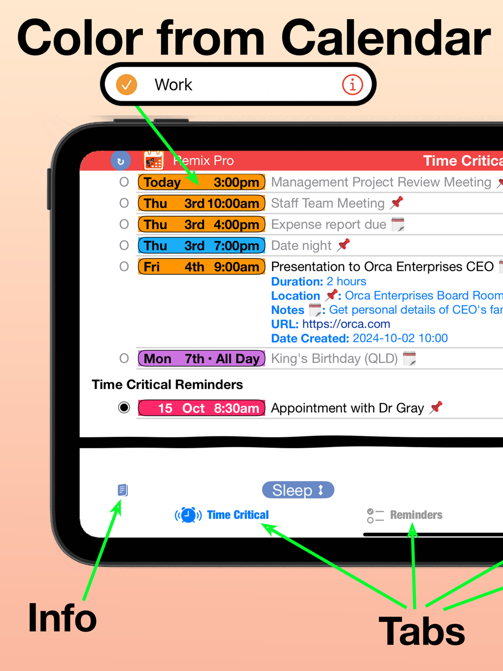 • Recurring Reminders: Select any calendar to serve as a source for recurring reminders—ideal for keeping personal tasks separate from critical events.