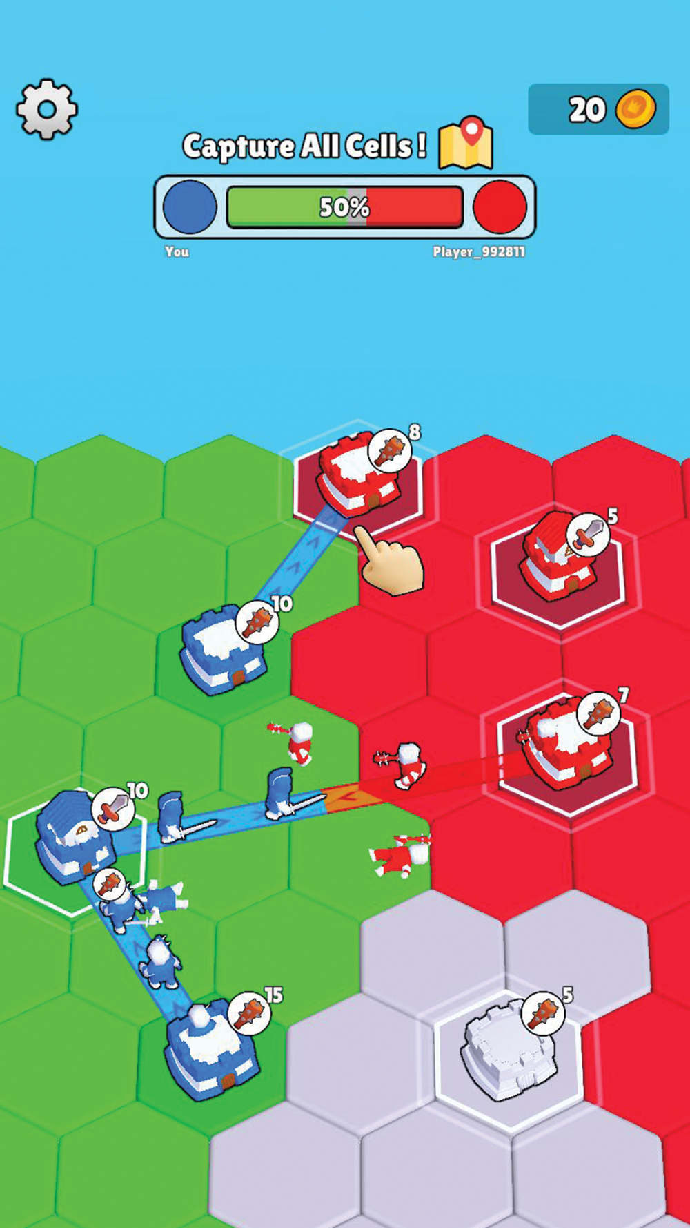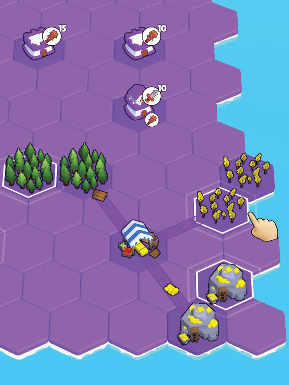 Start small and expand your realm by unlocking new territories.