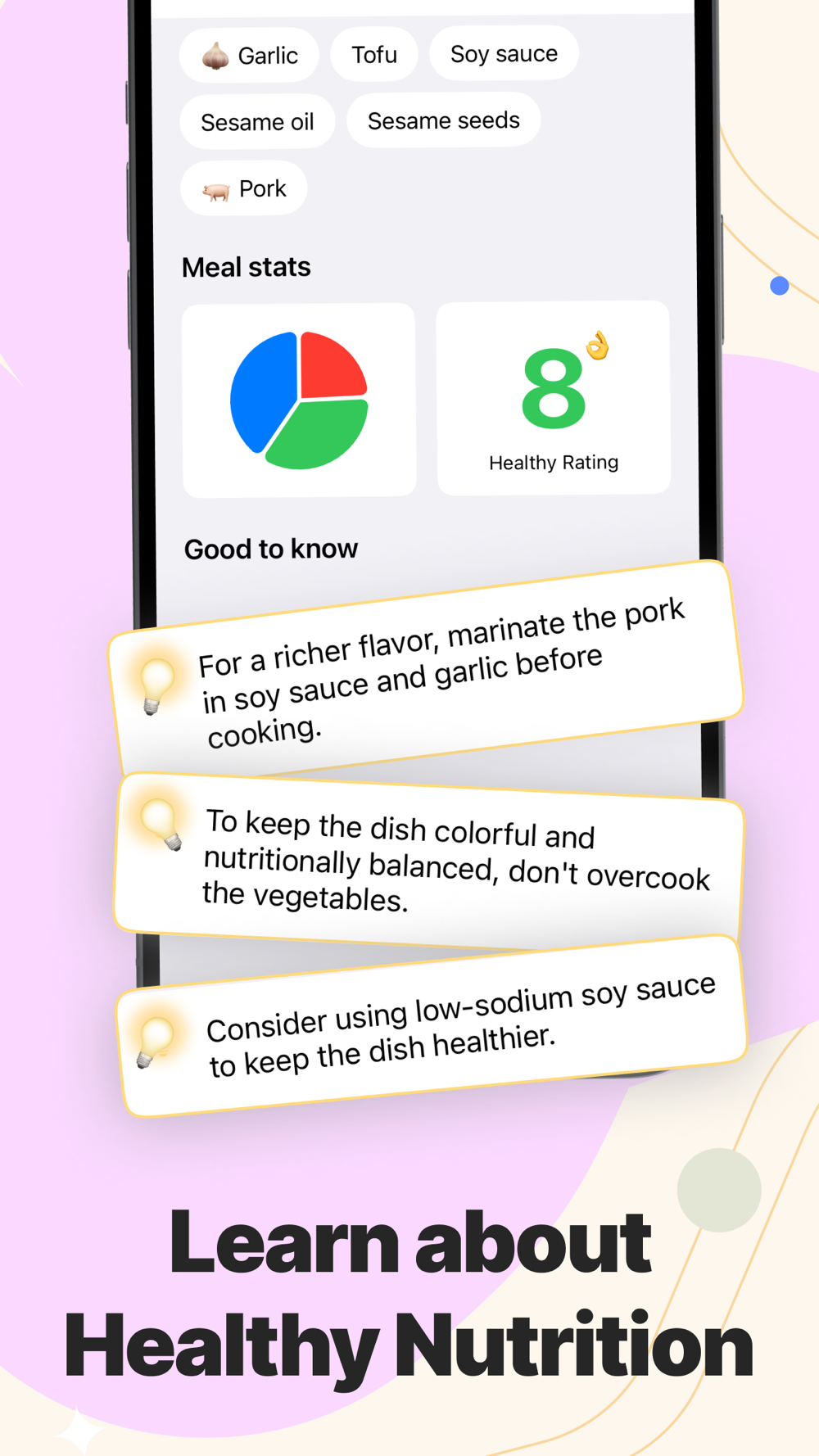 Take a picture of your food to track it. It will tell you how many calories and macros are in your meals, list the ingredients, and rate your health.