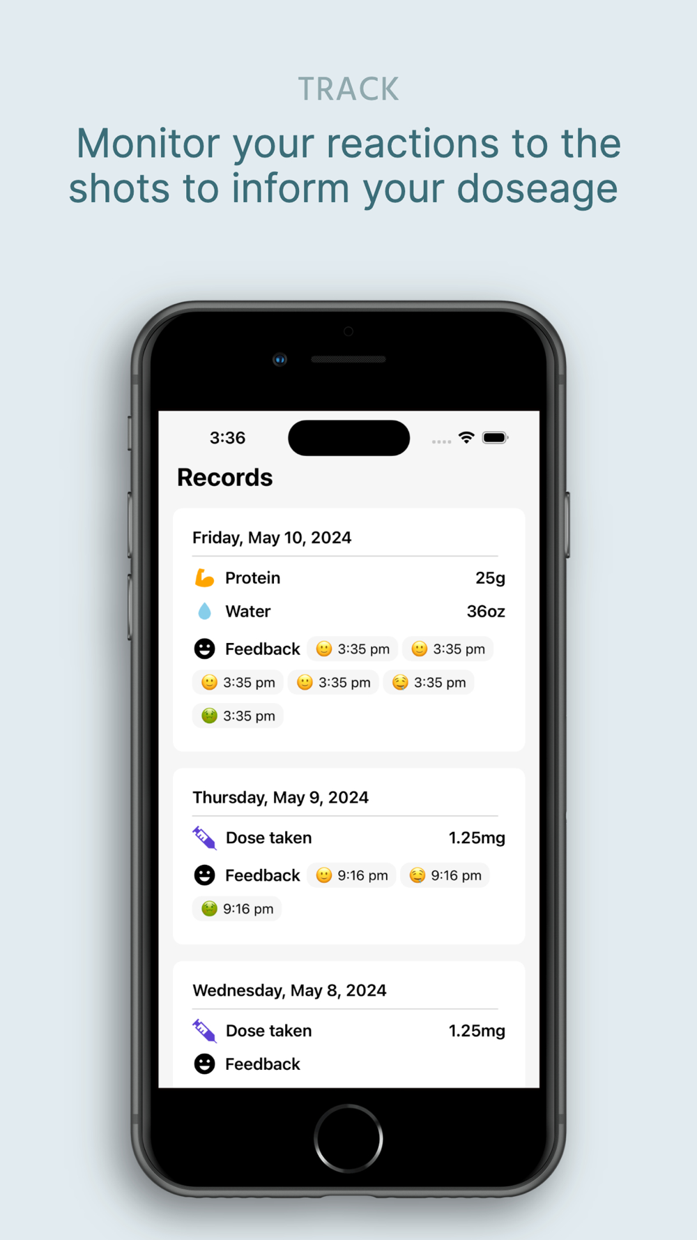 Comprehensive Tracking: Log your hydration, nutrition, and reactions to your medication.
