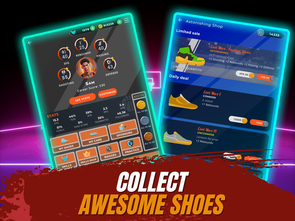 But Astonishing Basketball Career is also the ultimate basketball player simulation you know and love! It includes in-depth management of your team's strategies, upgrades, customizable shoes, unlockable skills and abilities, superpowers, sponsors, cars, and much more!