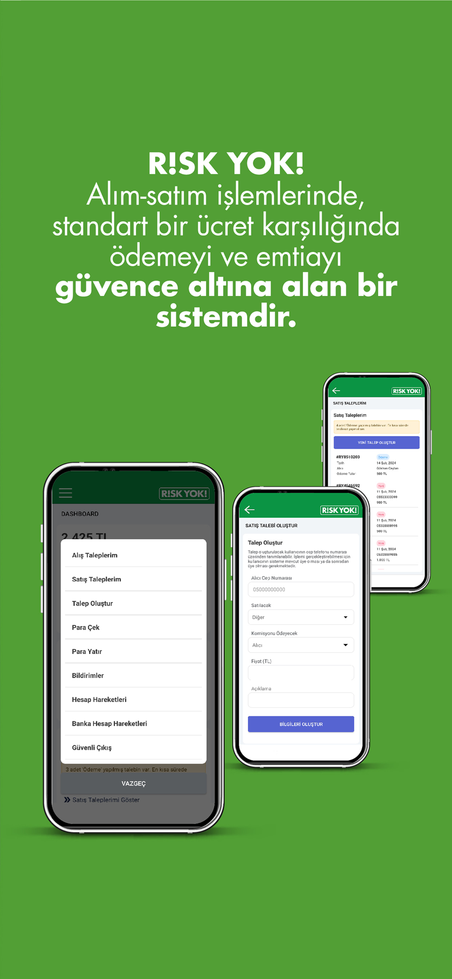 R!SK YOK! üzerinden gerçekleşen tüm alım satımlarda her iki taraf da güvendedir.