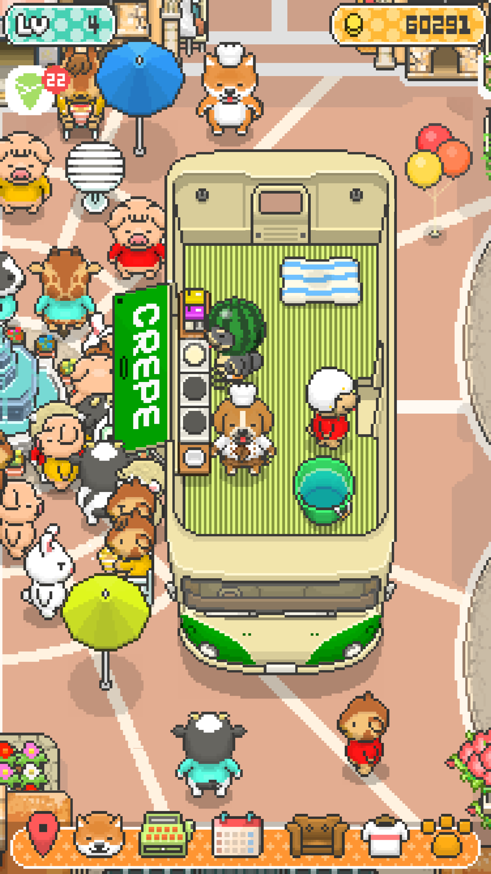 Buy furniture and clothes with your profits and decorate the crepe shop food truck and vacation homes!