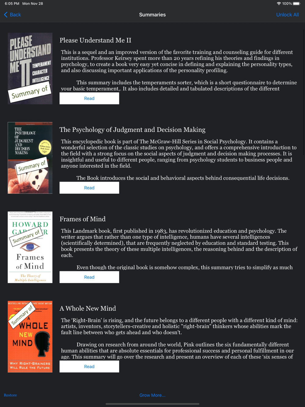 Note: Please note that the book summaries in this app are offered as an in-app purchase and are NOT for free. This app doesn't bombard you with unwanted advertising, so please accept our model of revenue since creating maintaining this content takes a lot of time and effort.