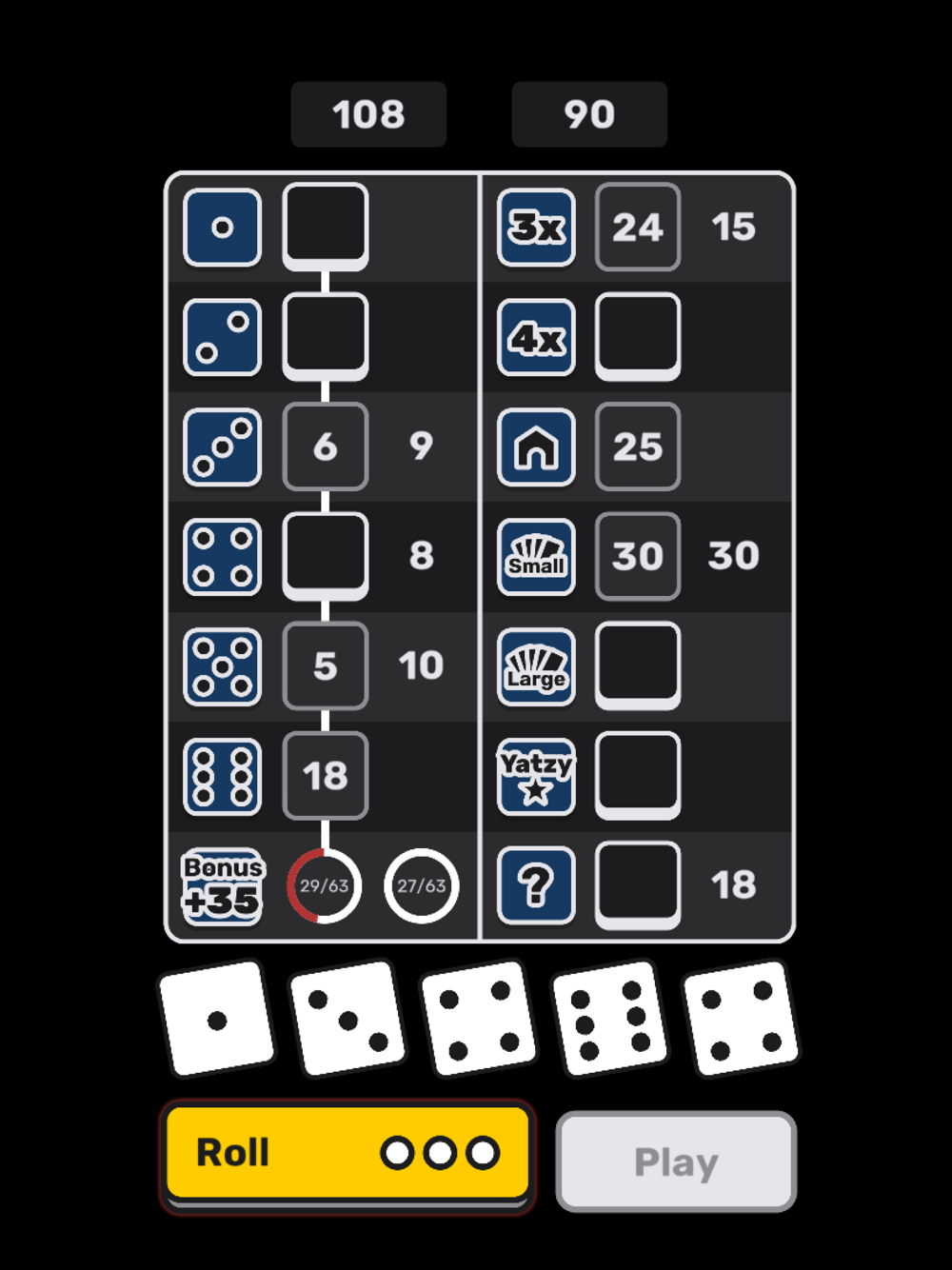 Welcome to Yatzy by Staple Games, the simple and straight-to-the-point dice game from Staple Games. We believe games should be easy to understand and fun to play. That's why our Yatzy is just like the classic game you love, but without any extra stuff you don't need. There are no in-app purchases, no leaderboards, no in-game currencies, and no loading screens. Just Yatzy, pure and simple.