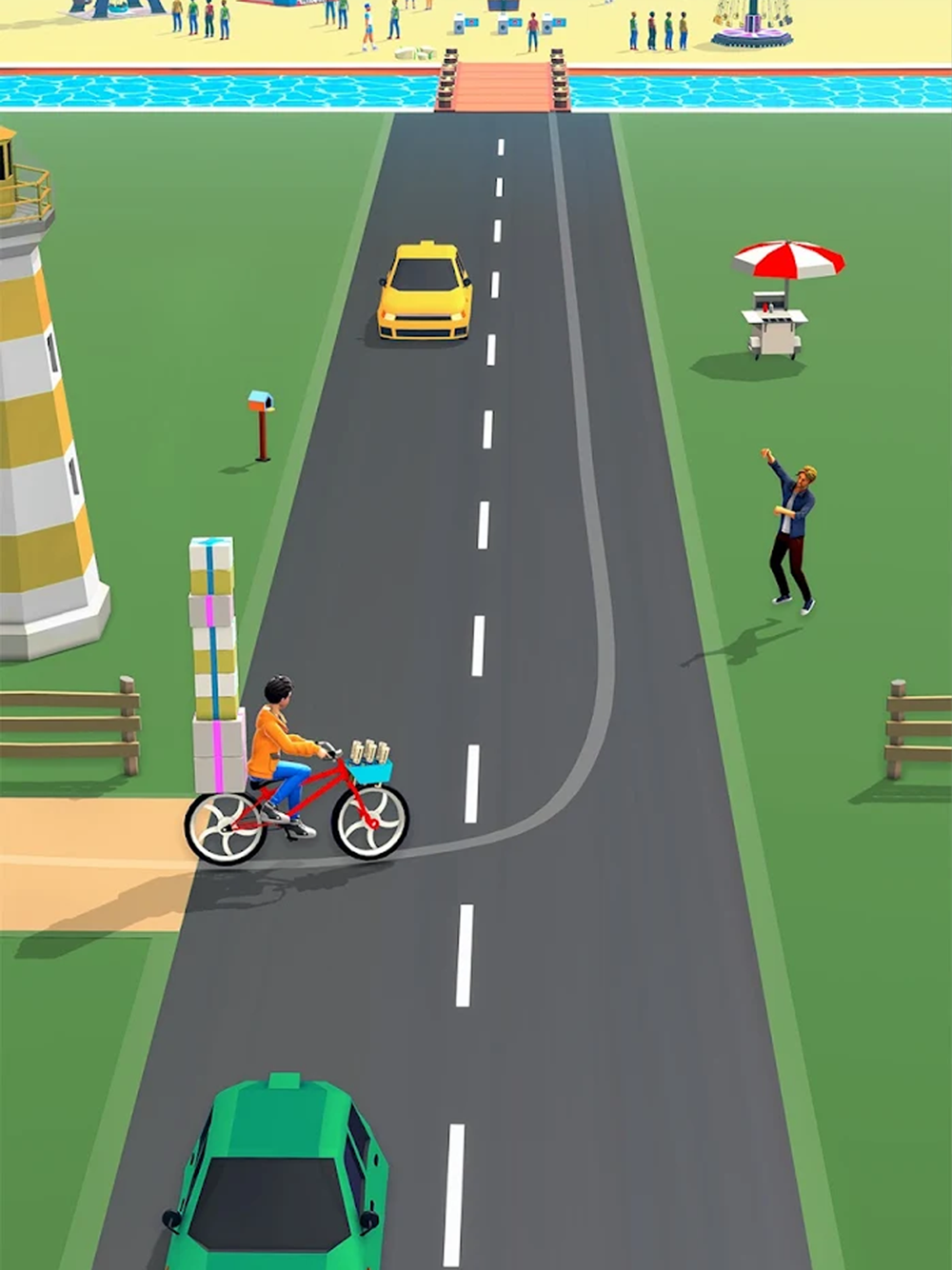 Small town paperboy has been assigned a new duty to deliver the news of an amazing fun-ride amusement park. The paper boy has news in the newspaper which has tickets attached to it. Bicycle around the city to deliver this good news and invite everyone to the park. You are the park owner, earn through news delivery, and spend it on the park to establish new rides and become an idle tycoon of parks and town.