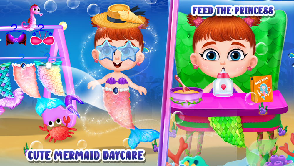 - Care for the adorable little princess mermaid with spa sessions, feeding, and playtime.