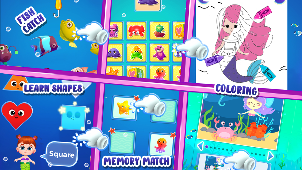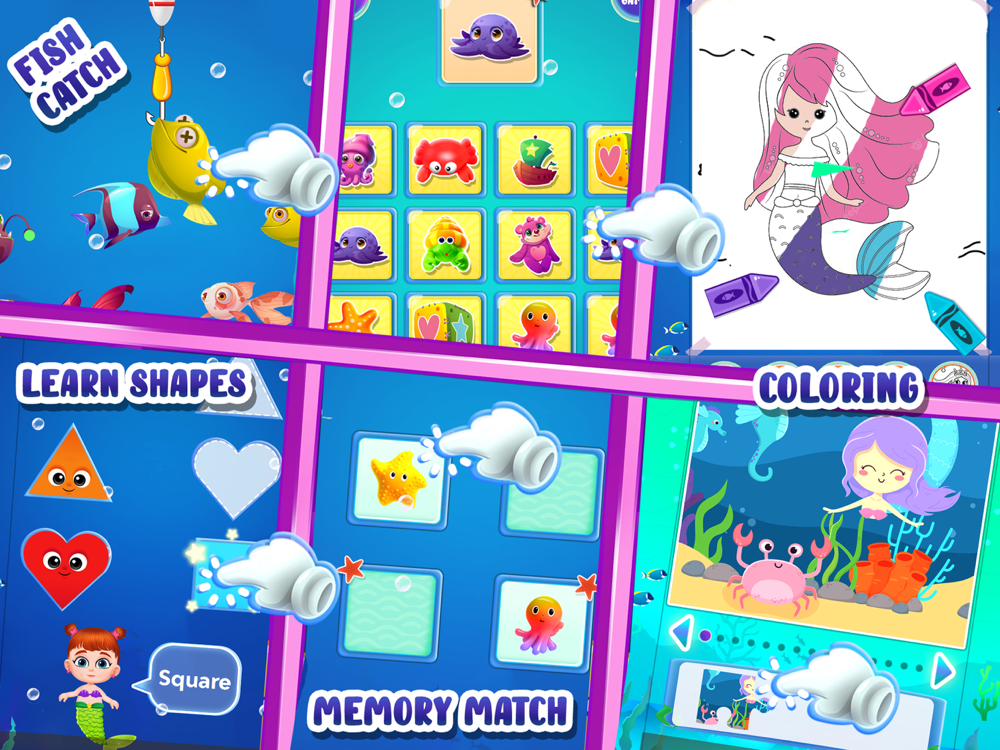 - Enjoy a collection of engaging MINI-GAMES, including shape learning, coloring, fish catch and more.