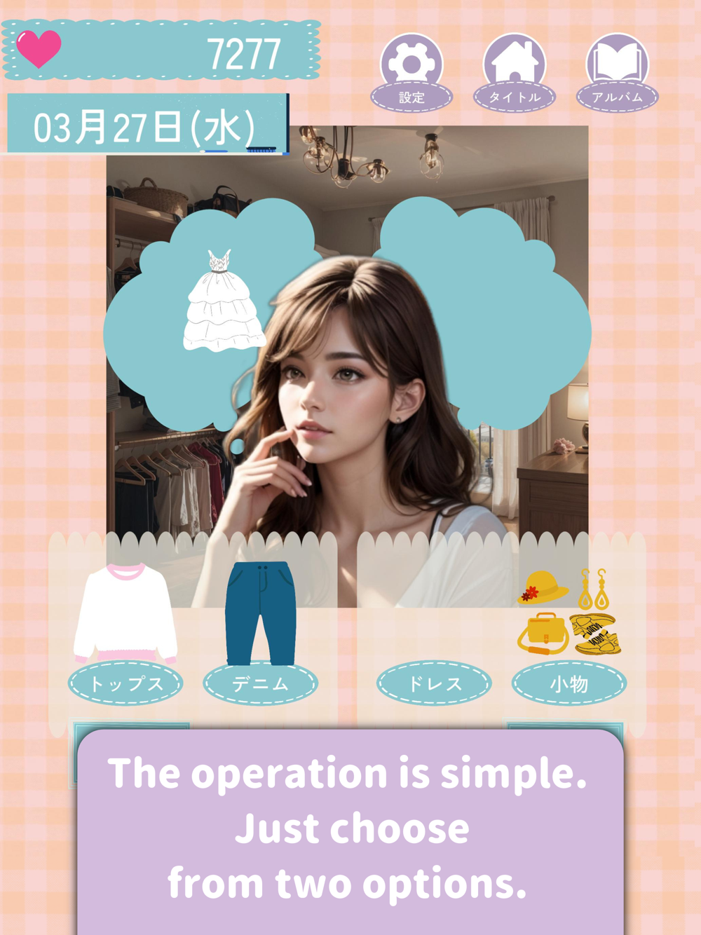 Since there are only two options for outfit selection, anyone can enjoy dressing up with simple operations.