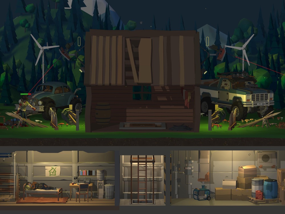 It just so happened that you met the beginning of the zombie apocalypse in the middle of the night forest. Running away from zombies, you accidentally stumbled upon a lonely hut hidden in the very center of a forest full of walking dead. What was the surprise when you found out that there is a fortified basement under the hut, which has everything you need for survival. And from that moment your story begins...