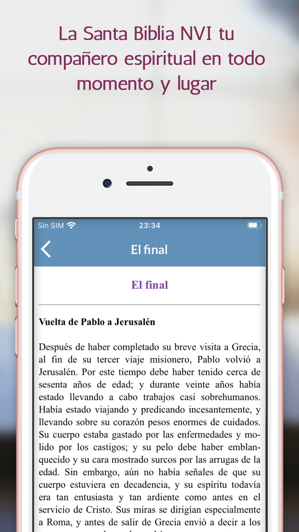 Descubre la esencia espiritual y enriquece tu fe con la aplicación "Santa Biblia NVI", la herramienta definitiva para llevar la palabra de Dios siempre contigo. La Biblia Nueva Versión Internacional se ha diseñado meticulosamente para proporcionar a los creyentes una experiencia profunda y significativa de lectura y estudio bíblicos, disponible completamente offline. Sumérgete en las sagradas escrituras sin la necesidad de una conexión a internet, permitiendo que la palabra de Dios te guíe y acompañe en cada momento de tu vida.