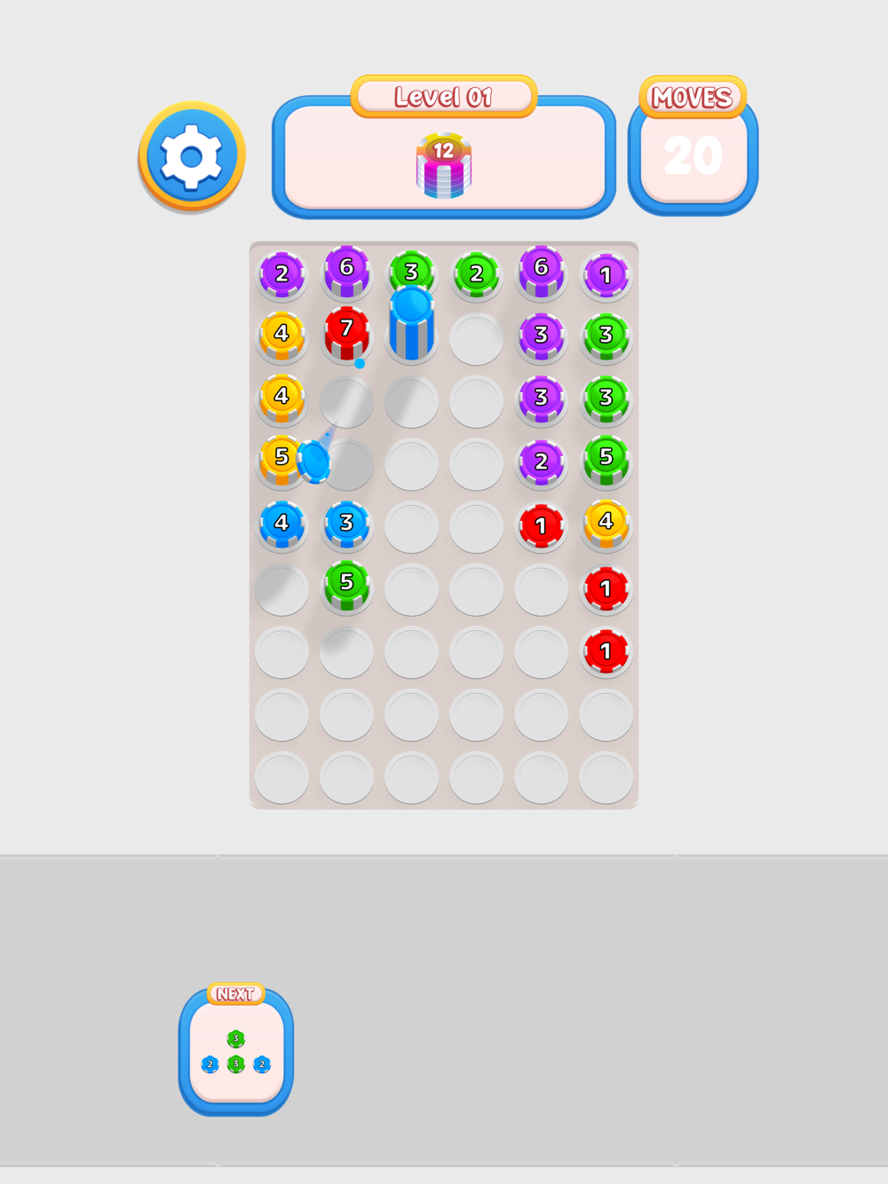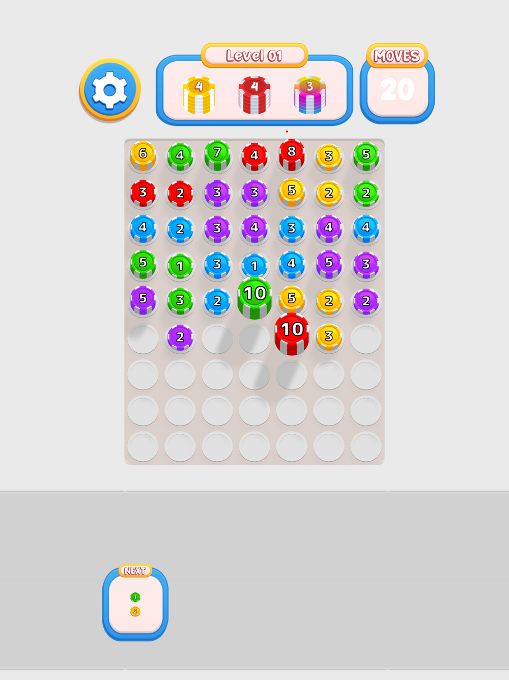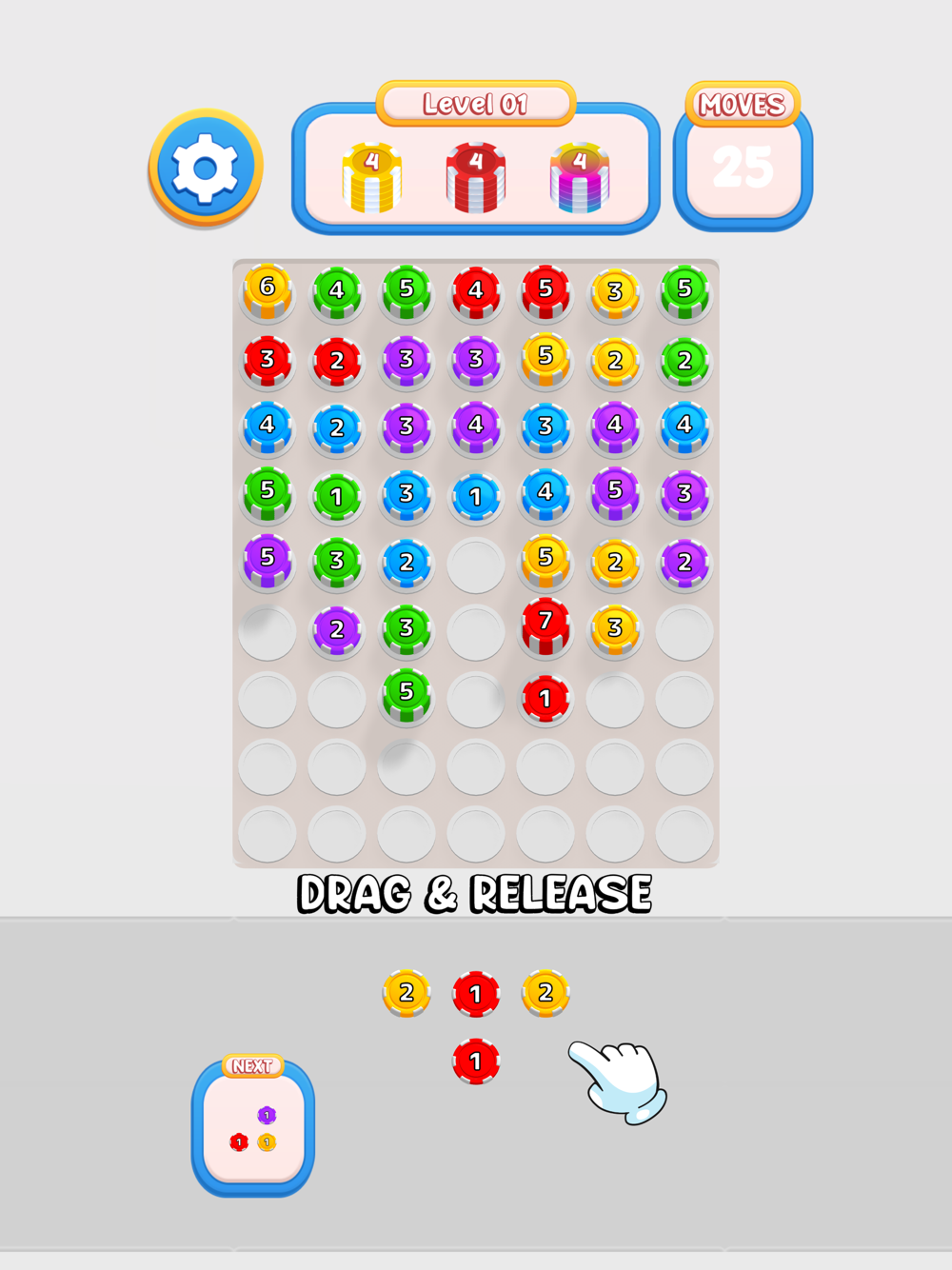 Shoot and merge pieces to stack them on top of each other and prevent them from falling.