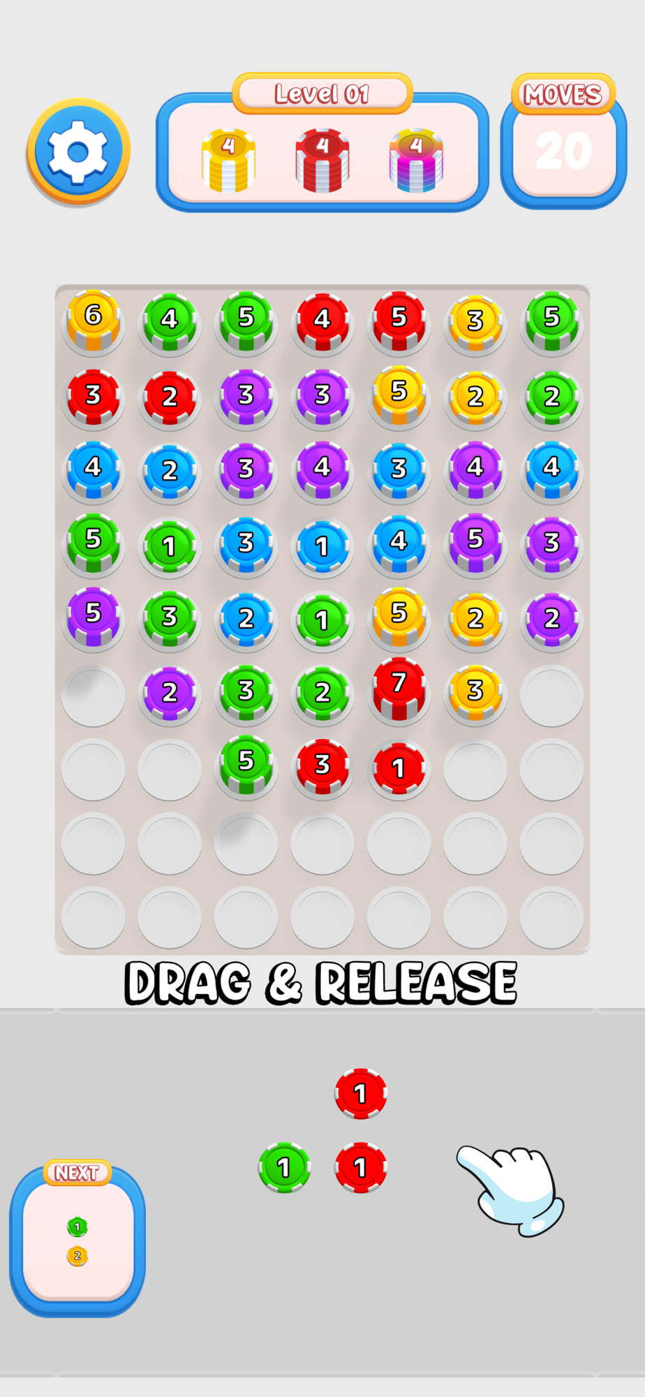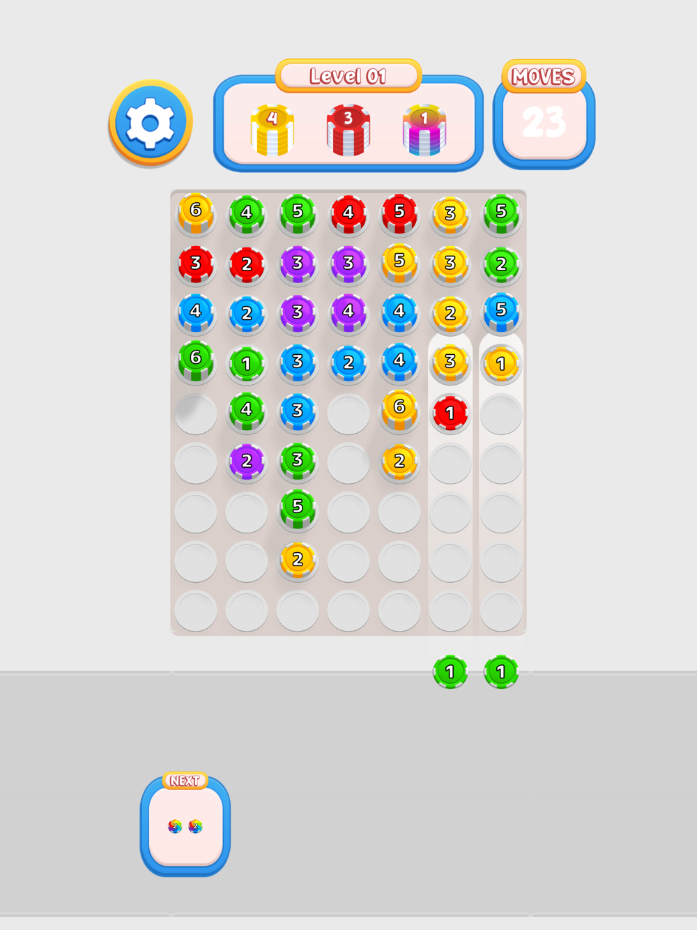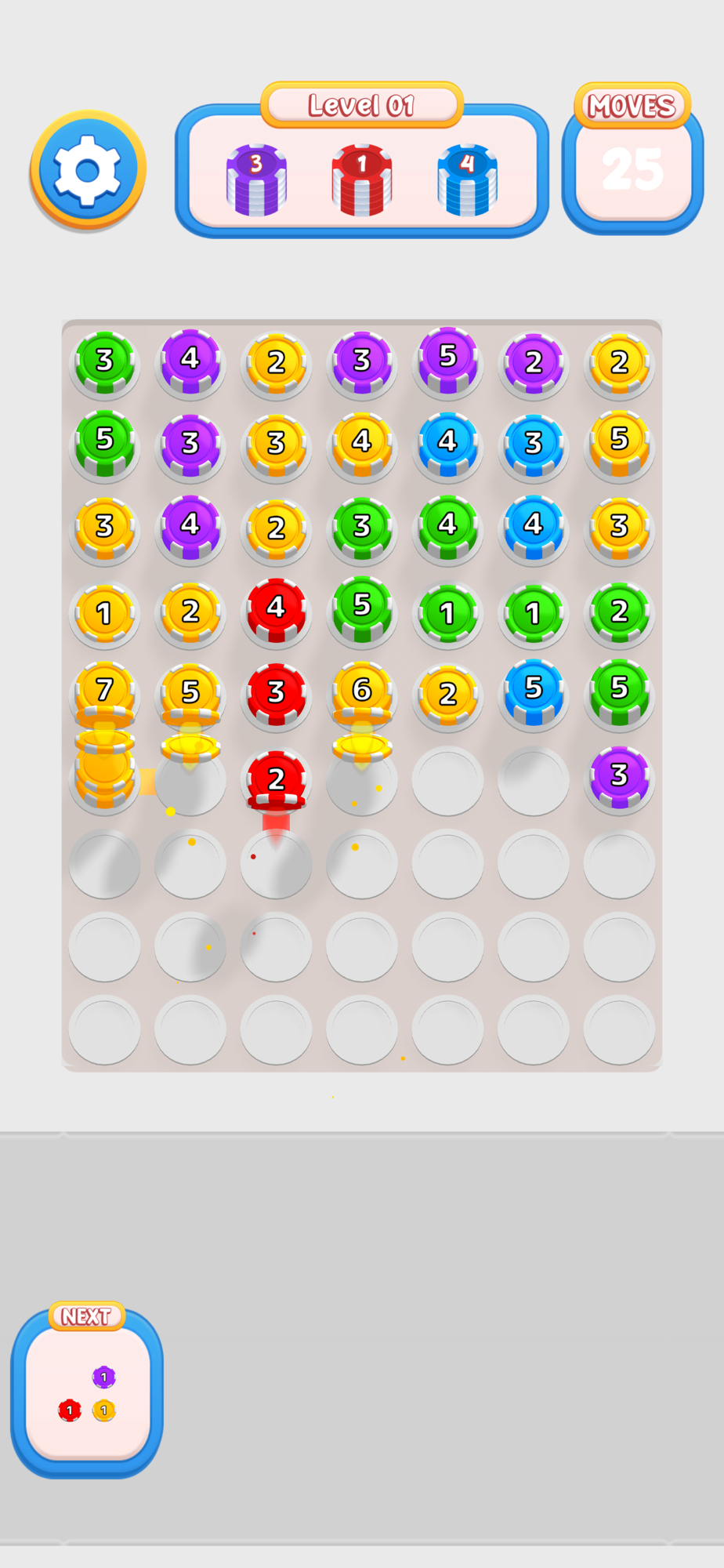 Shoot and merge pieces to stack them on top of each other and prevent them from falling.