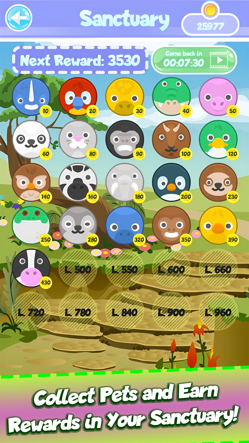 - The Sanctuary: Unlock new pets as you progress and increase your bonus rewards. Engage more to boost your collection and rewards.