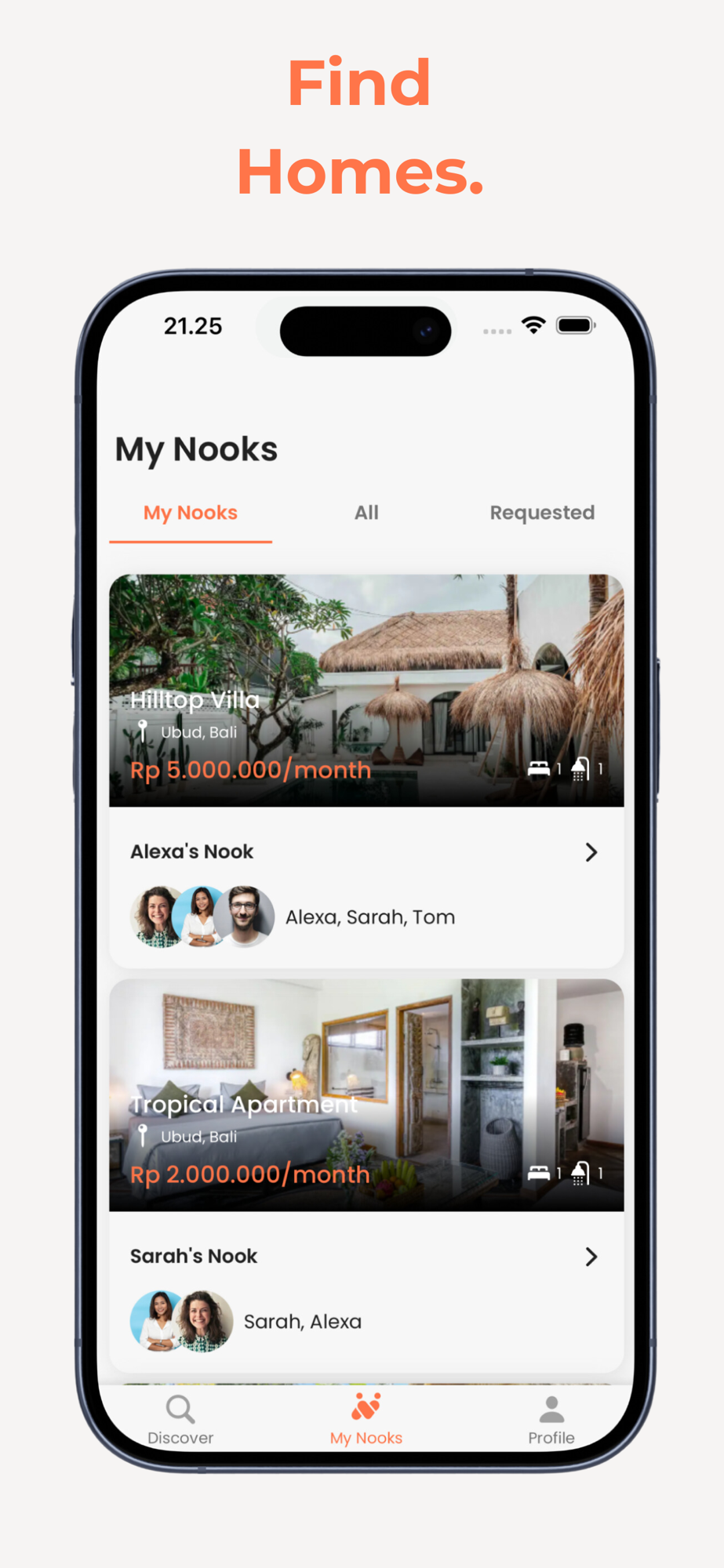 Welcome to Nook, the first app to match roommates based on lifestyle preferences, book together ideal accommodations, and split the rent all in one space.