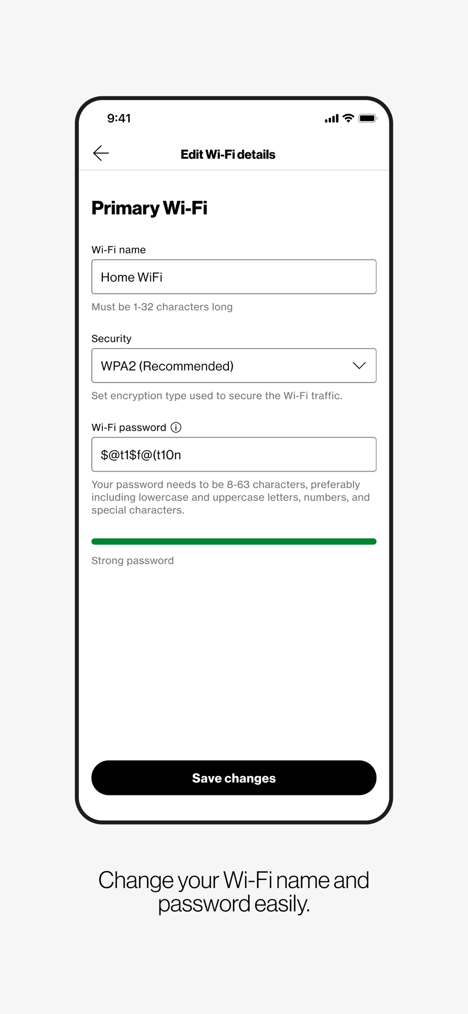 - SSID & Password: View and change your network name (SSID), password, and encryption type.