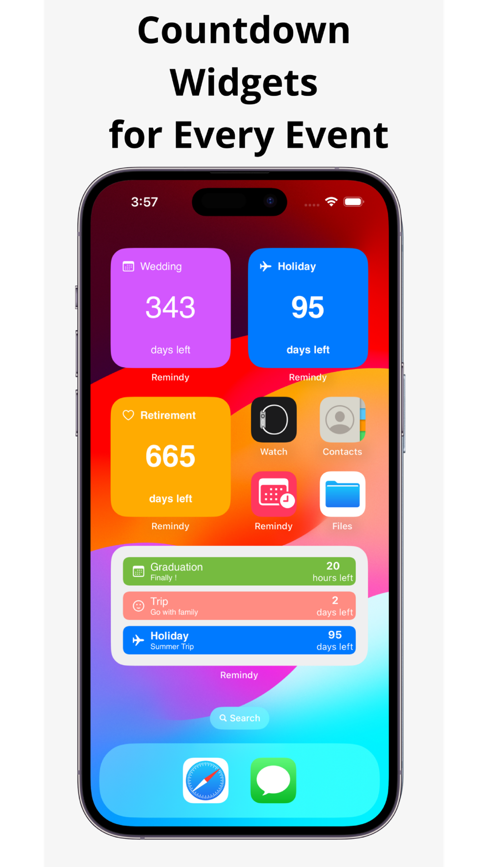 Experience the thrill of the countdown right from your lock screen with beautifully integrated widgets, giving you immediate access to the timelines of your upcoming events without needing to unlock your phone.