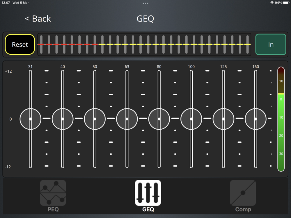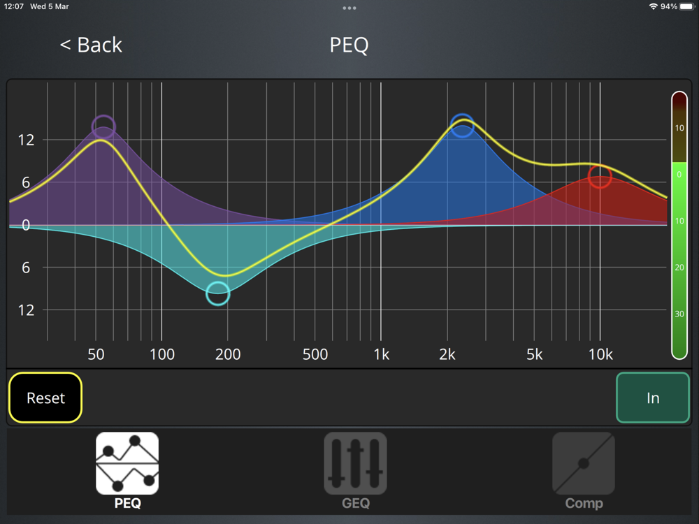 - Control the Aux mix PEQ, Graphic EQ and Compressor