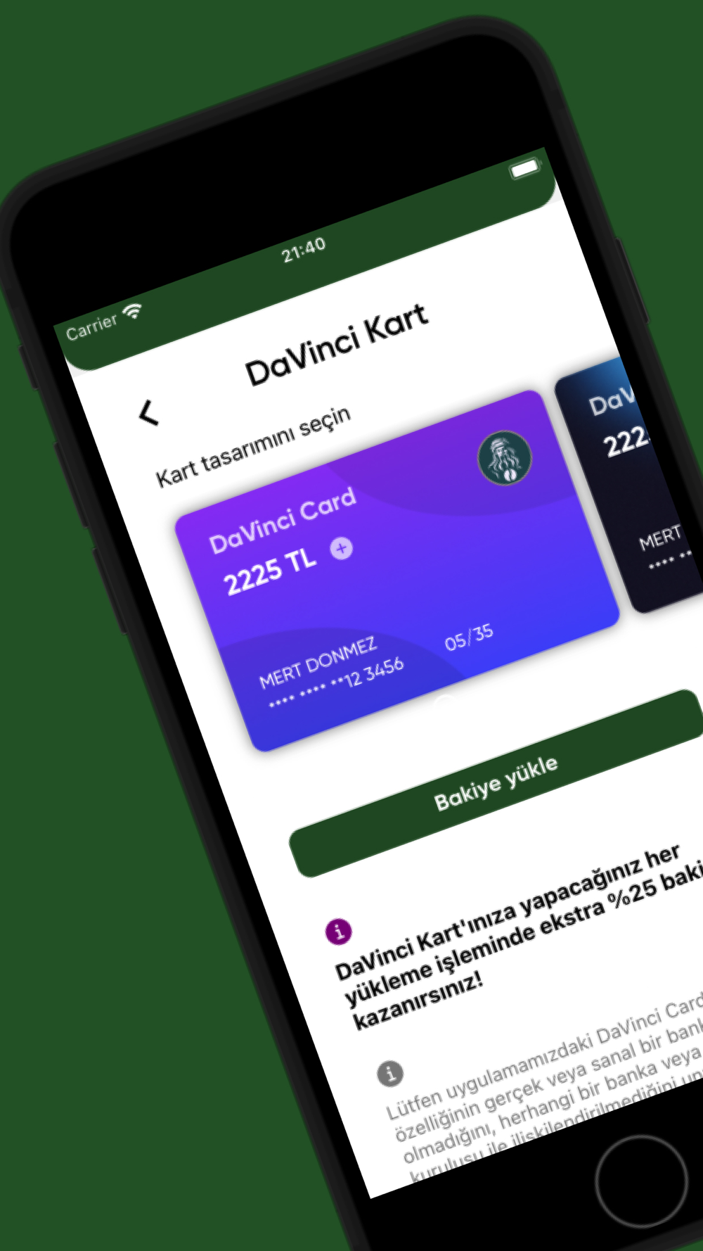 DaVinci Card ile Kolay Ödeme: Nakit para kullanmadan alışverişin keyfini çıkarın. DaVinci Card'a para yükleyerek uygulama içinde kolayca ödeme yapın. Gerçek veya sanal bir kart olmasa da, uygulama içi bakiyenizi yönetmenin en pratik yolu.