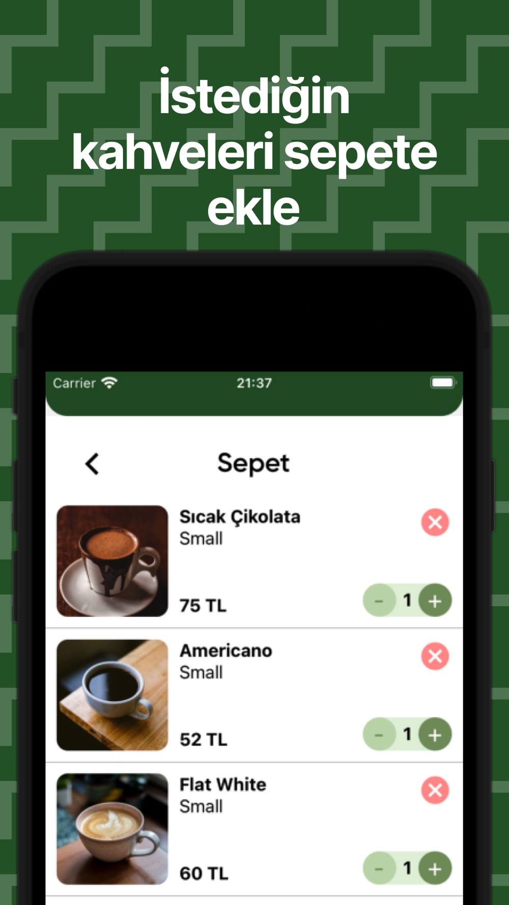 Ücretsiz Kahve Kazanın: Belirli bir sipariş sayısına ulaştığınızda sizi ücretsiz kahve ile ödüllendiriyoruz. Ne kadar çok sipariş, o kadar çok hediye!