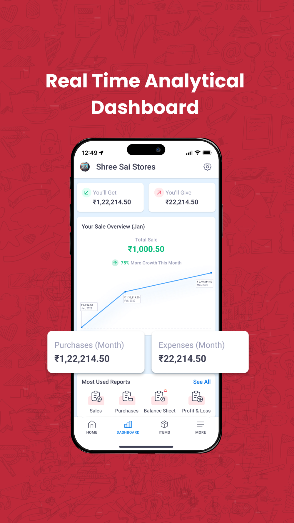 Reports and Analytics: Gain insights into your business performance with over 50 comprehensive reports, including GST reports, stock reports, party reports, balance sheets, and profit and loss statements. The Bookkeeping App provides the data you need to make informed decisions.