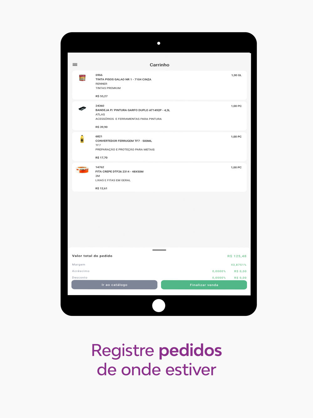 • Cadastre novos clientes, acesse seus clientes, o status dos seus pedidos e suas contas em aberto;