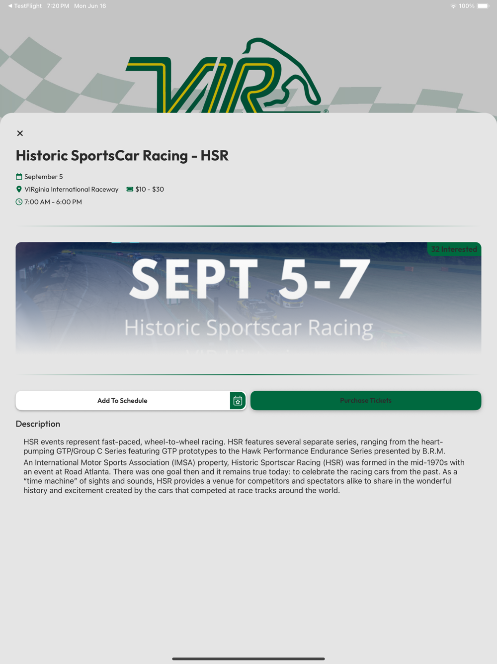 The VIRginia International Raceway app is a must for your next visit to America's first true "motorsport resort!" Race and resort experiences are that much more action-packed with track schedules, events and promotions, tickets, directions and more right on your mobile device.