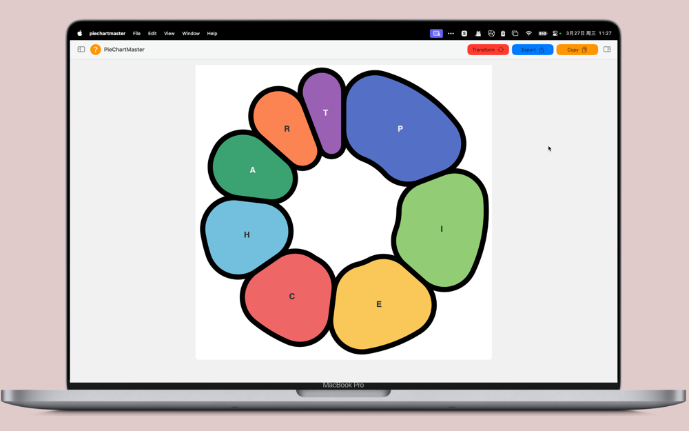 Liberte a sua criatividade e crie gráficos de pizza/rosas fantásticos com facilidade! O PieChartMaster é a sua ferramenta imprescindível no iOS e macOS, permitindo-lhe introduzir facilmente dados e apresentar relações de dados complexas de uma forma colorida.