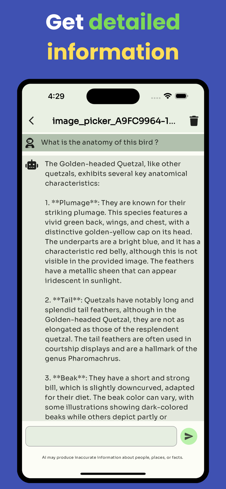 4. Engage with our AI in a conversational interface to delve deeper into avian facts and insights.