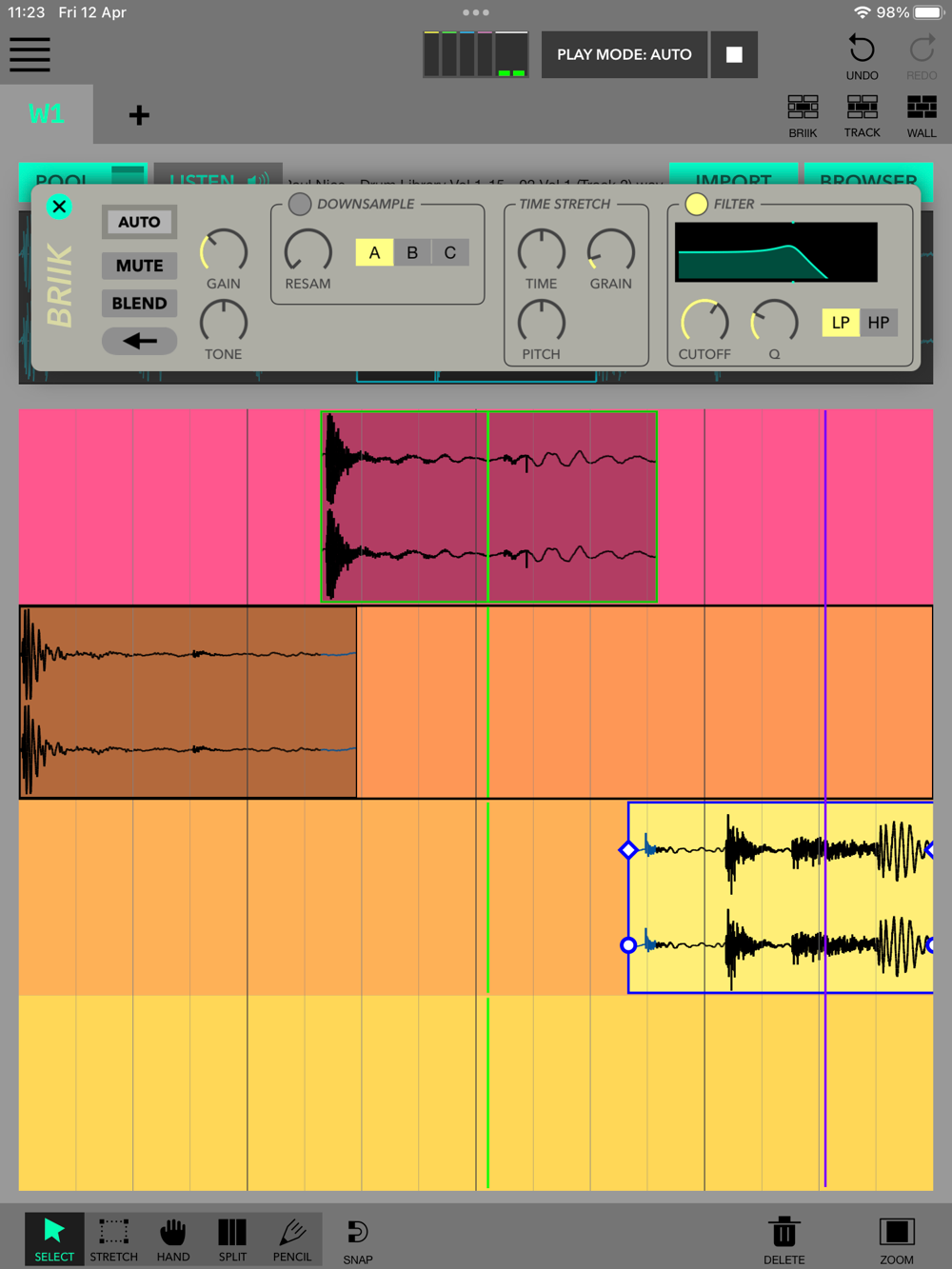 - STRETCH Change pitch and time stretch by dragging start and end point.