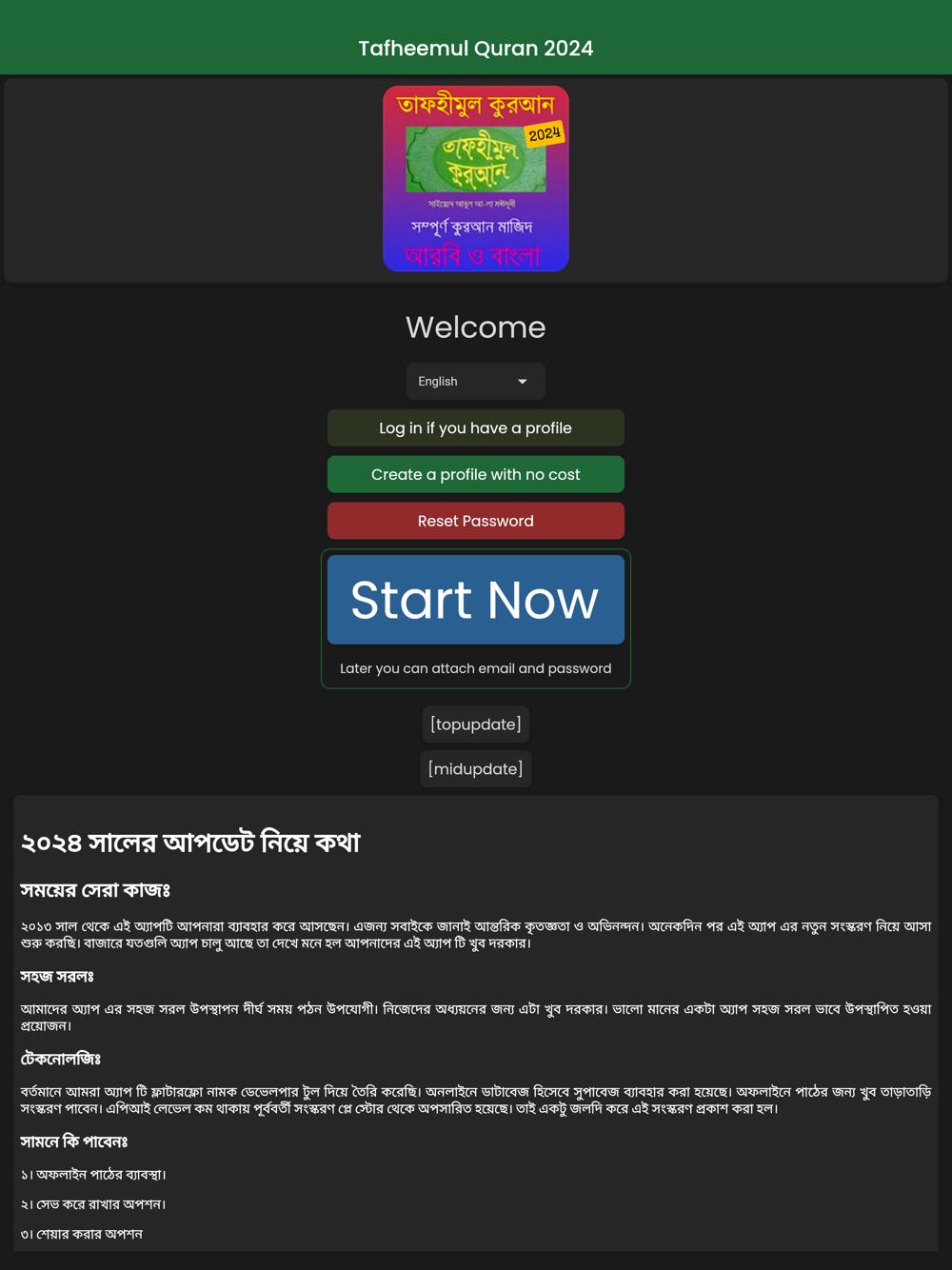 This is an unique app. You can use it among your all devices. It is developed with best development tools with integrated best API services. Users can report any issues, bugs, feature requests anytime from within the app. Full book of translated Tafheemul Quran together with 100+ subjectwise Quranic Ayaths and chapters included here. We have included powerful database and authentication services for your data security.