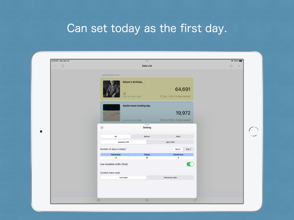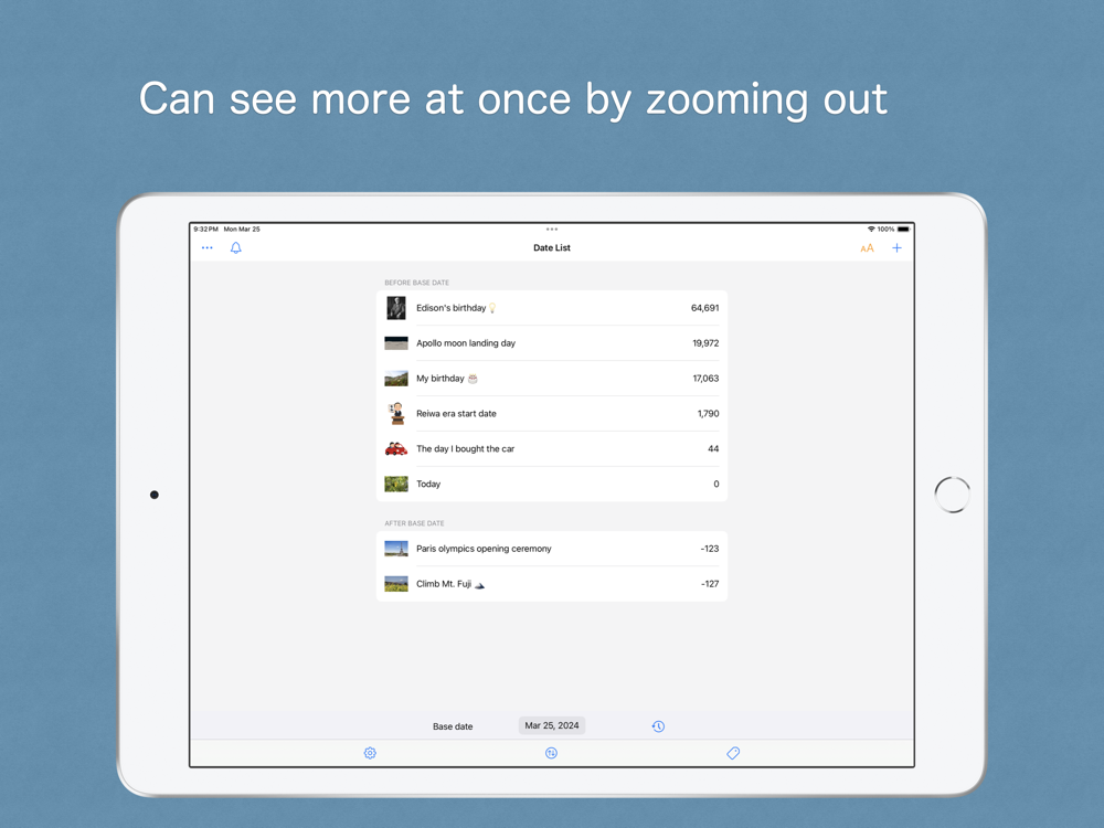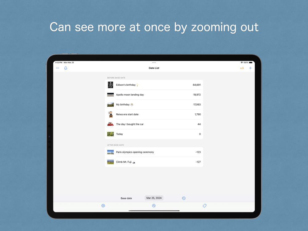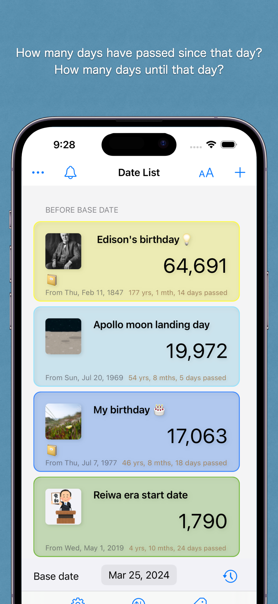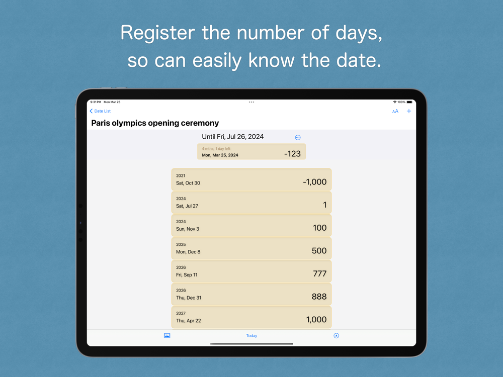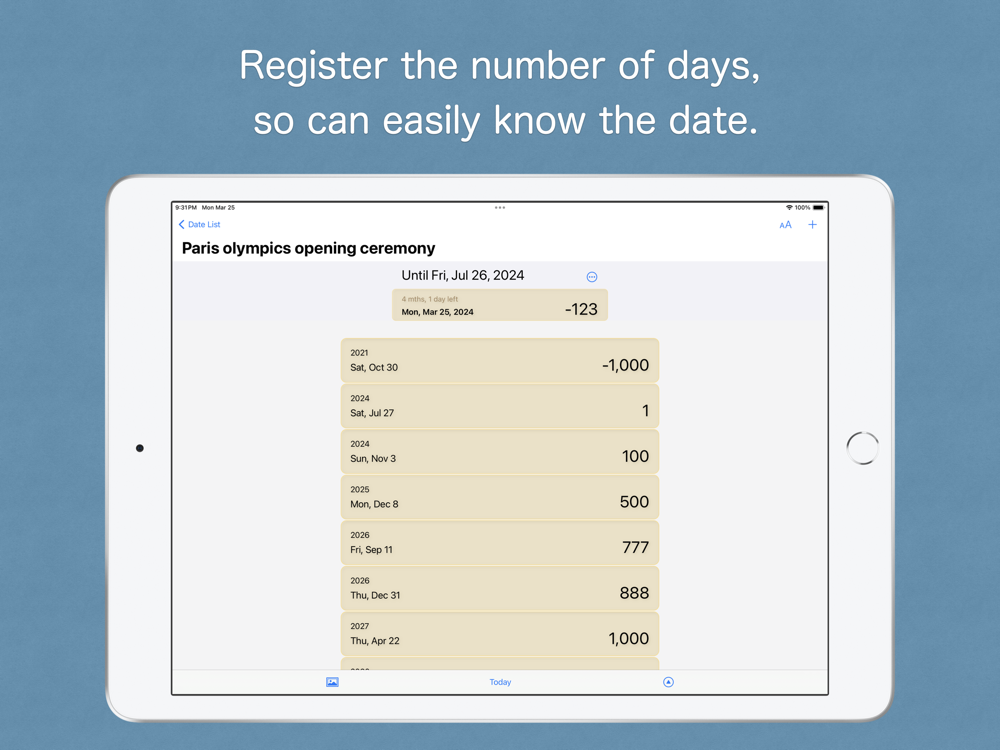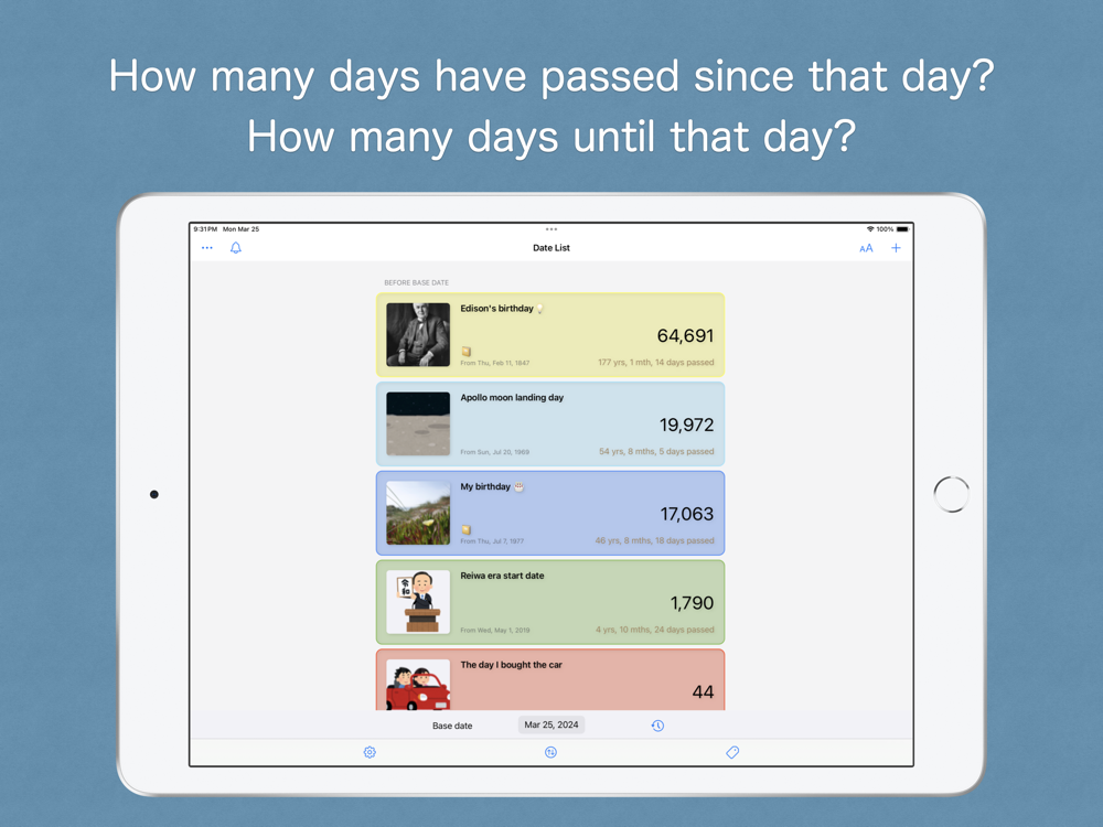 By registering dates of interest, such as anniversaries or events, you can easily check the number of days from that date.