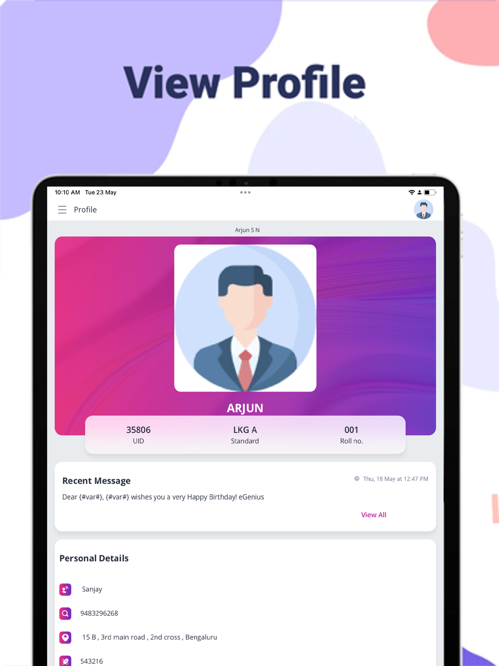 To provide the power of technology in the hands of Parents, Teachers, and School Admin.