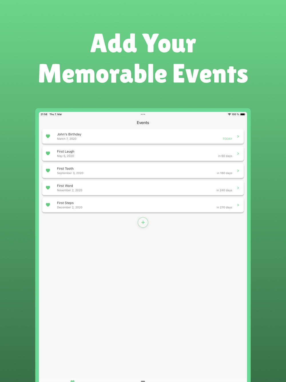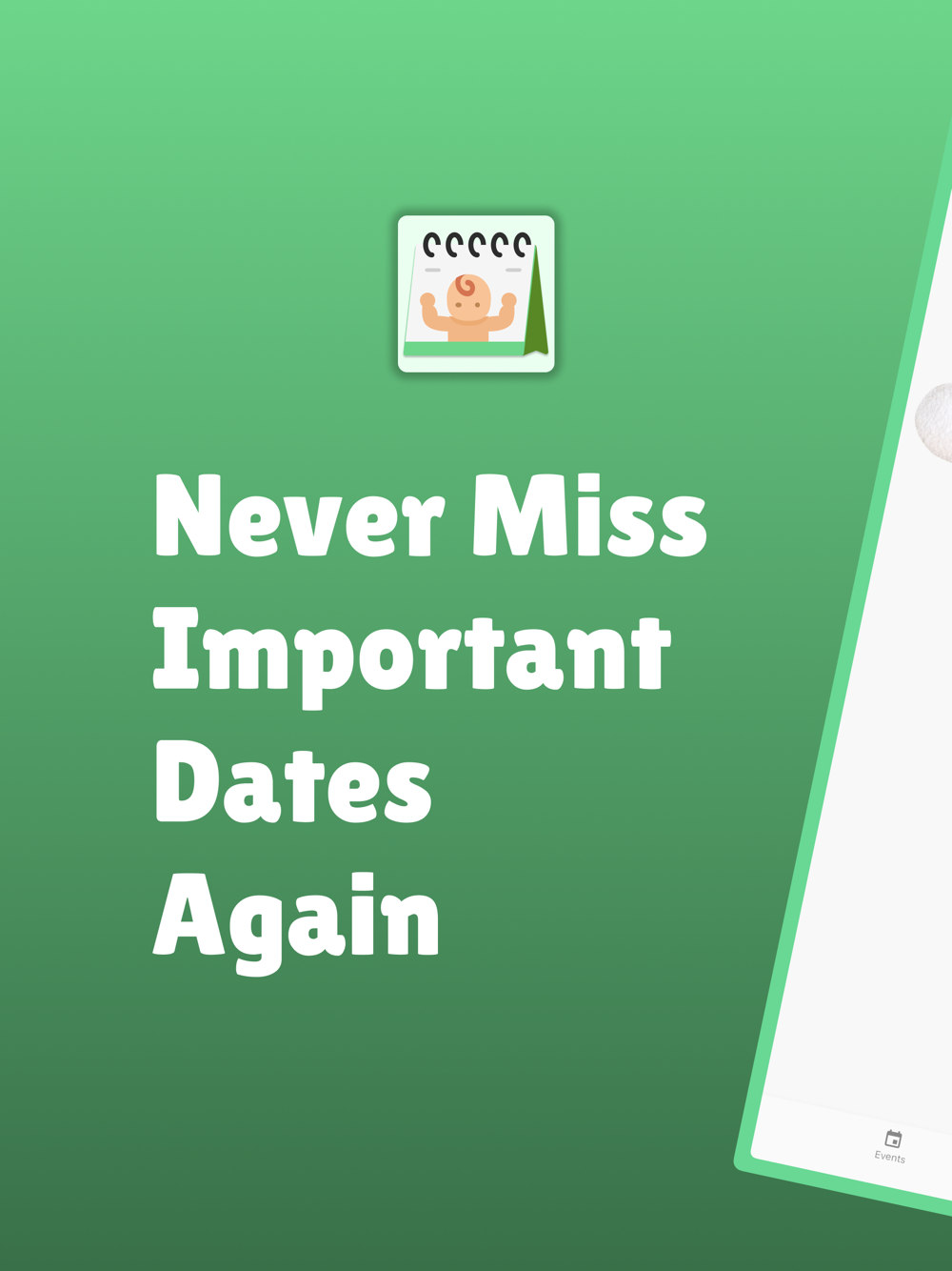Easily add the birthday, first steps, and other significant events like the first word, and receive reminders to ensure you never forget these special moments.