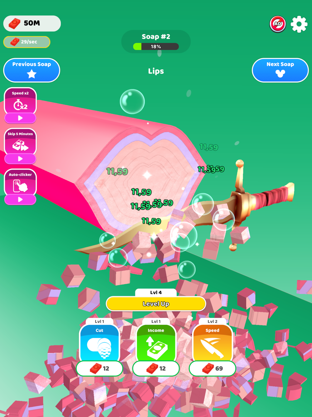 Idle Soap ASMR is more than just a game; it's a tranquil escape. Whether you're here to enjoy the relaxing sounds of ASMR or to indulge in the satisfaction of an idle clicker game, you'll find yourself lost in the simple pleasure of soap crafting.