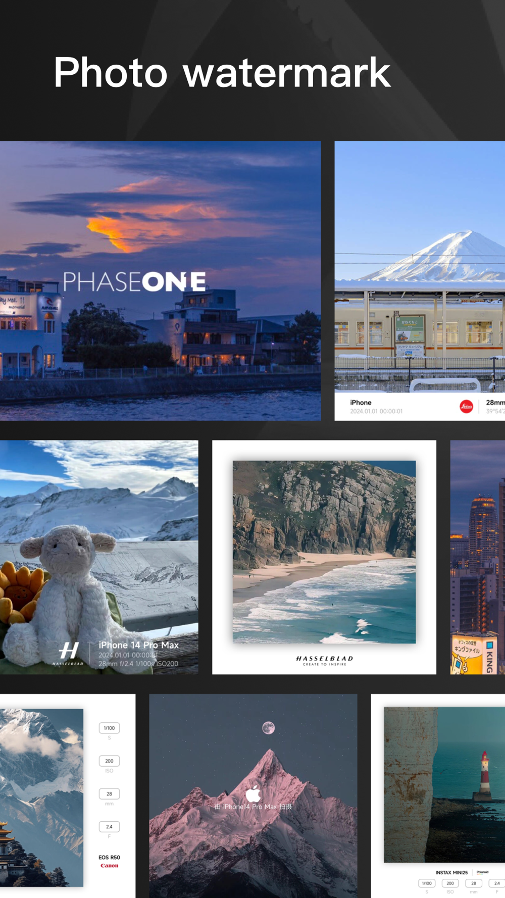 Additionally, it offers Polaroid borders and photo watermarks, with multiple watermark templates available to make your photos more exciting.