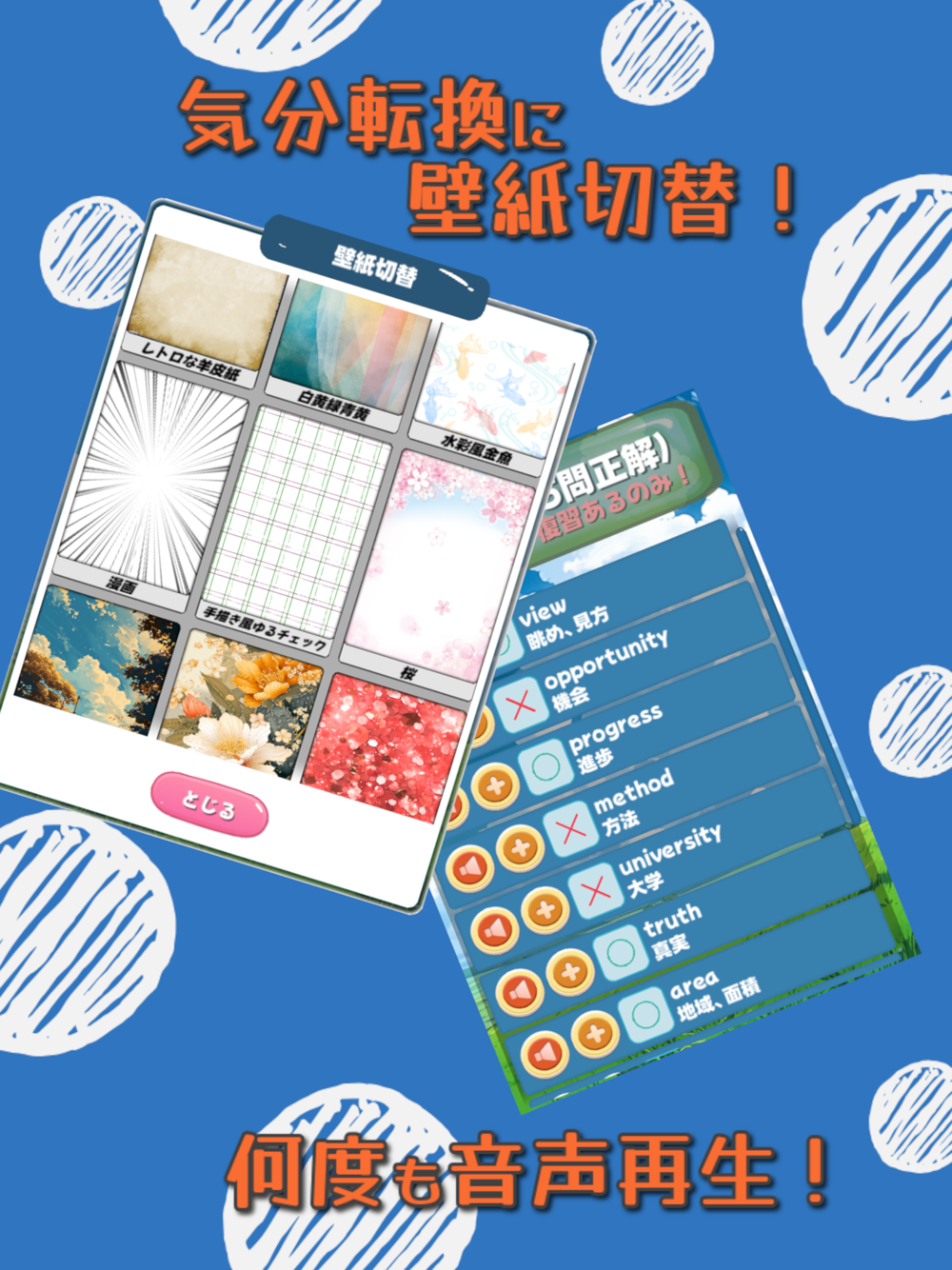 ・正解・不正解に関わらず、問題を解けば解くほど新しい壁紙がどんどん解放!