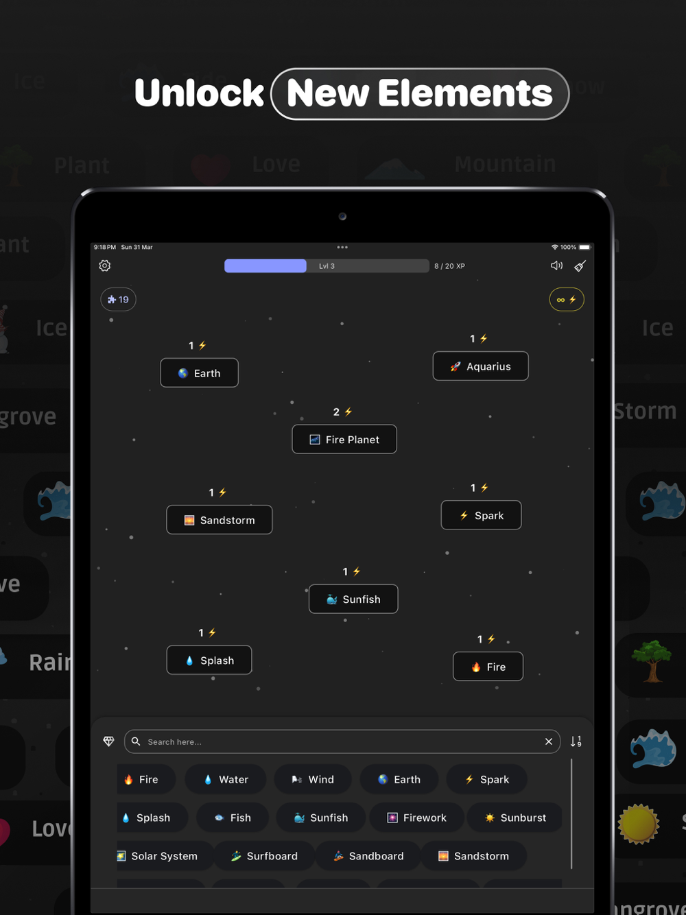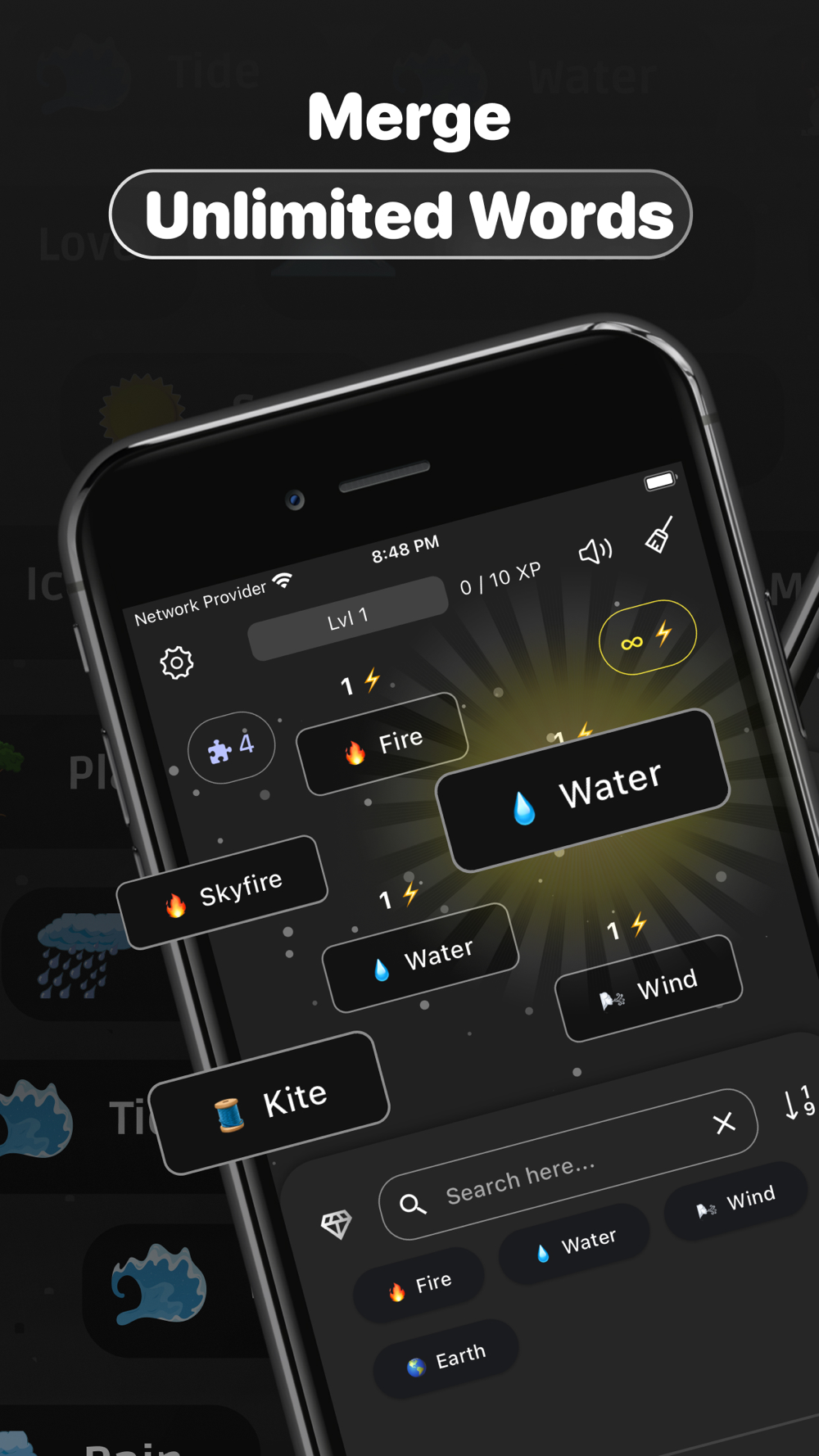 Each combination is a quick brain teaser: drag and drop elements to see what they create! Our AI instantly generates a logical result, whether it's an emotion, material, place, or pop culture reference. These new creations can then be used for further combinations! Level up by crafting new items, unlocking the ability to combine longer words for even more possibilities.