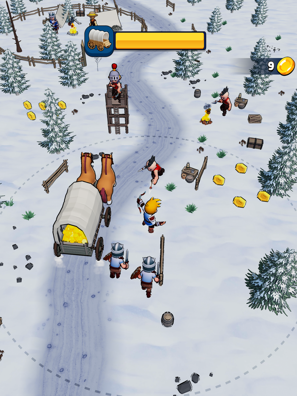Step into the shoes of a skilled archer in Escort the Wagon! As the guardian of the kingdom's wealth, you must embark on a perilous journey through medieval lands, protecting the precious cargo from relentless bandits and saving the kingdom's wealth.