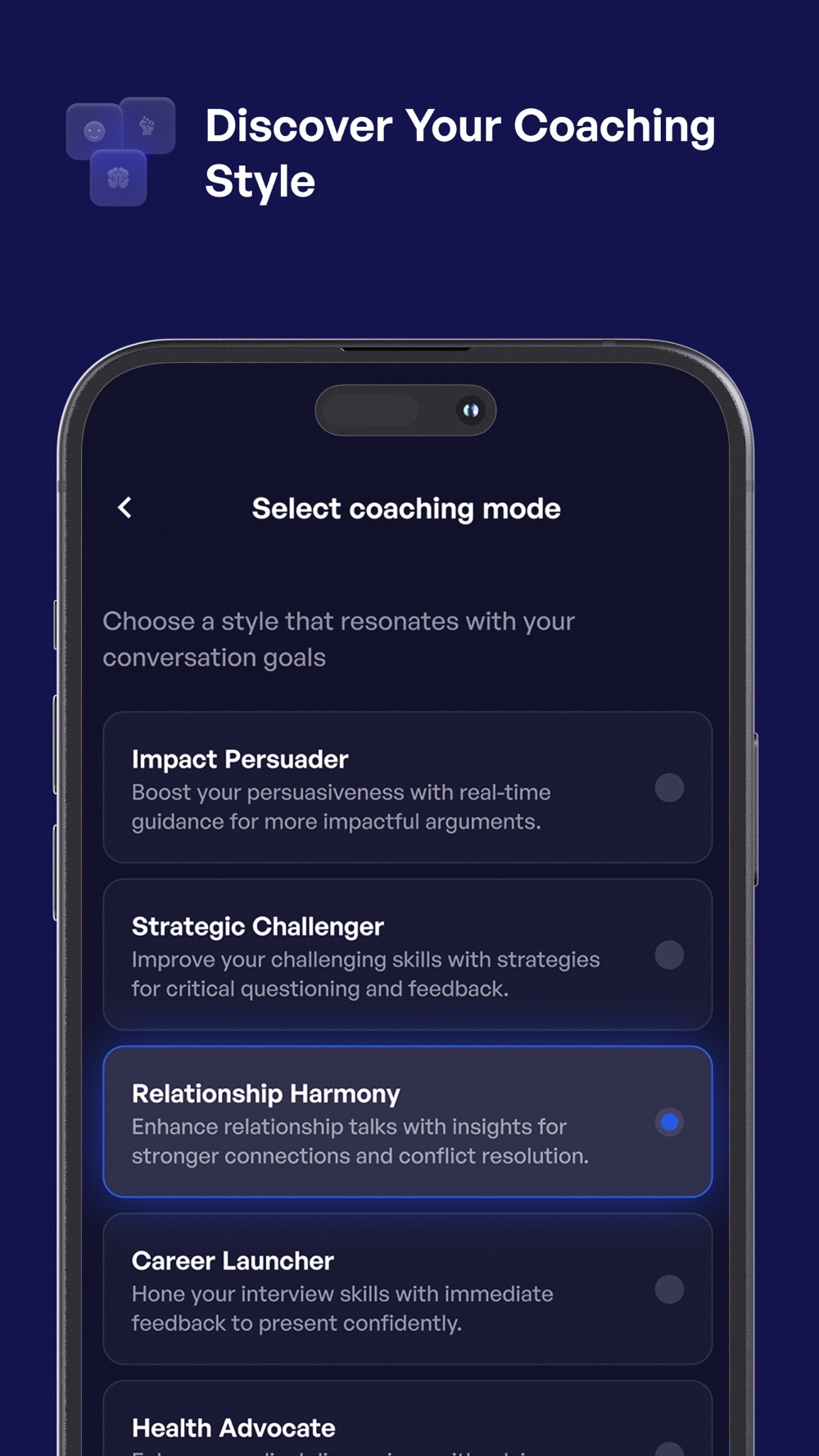 Introducing TawkCoach, your personal communication mentor in your pocket. Designed for the go-getters, the harmonizers, and every conversationalist in-between, TawkCoach is an innovative mobile app that leverages cutting-edge AI to provide real-time feedback on your live conversations. Whether you’re gearing up for a career-defining presentation, striving to foster deeper personal connections, or advocating for a healthy lifestyle, TawkCoach has a setting for you. Choose from Impact Persuader to amplify your influence, Strategic Challenger to sharpen your debates, Relationship Harmony to enhance interpersonal bonds, Career Launcher to elevate professional dialogue, or Health Advocate to support wellness conversations.