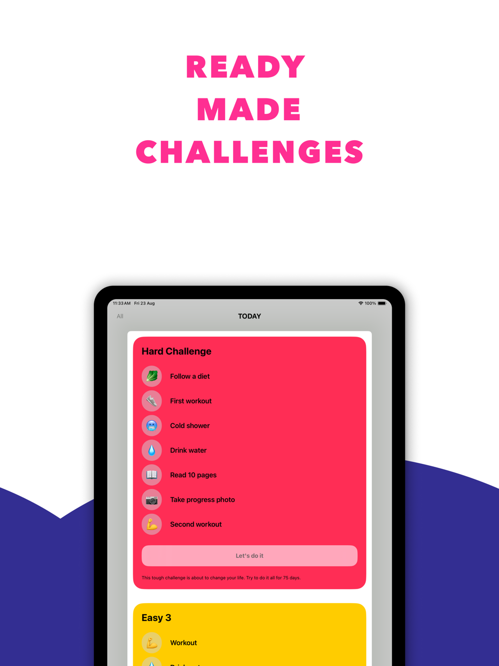 Pick from a library of challenges and habits or create one just for your needs.
