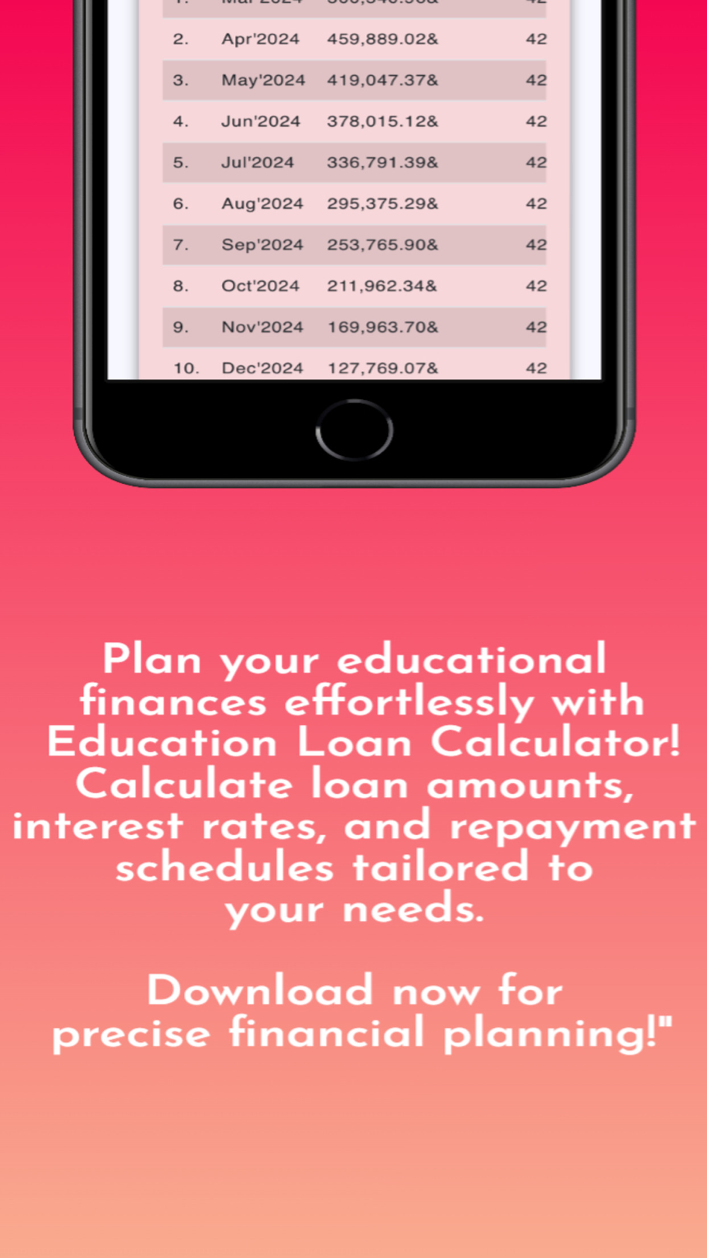 Effortlessly calculate your Equated Monthly Installments (EMIs) for any education loan you're considering, ensuring clarity and ease in financial planning for your academic journey. Download now and take the first step towards achieving your educational goals with confidence.