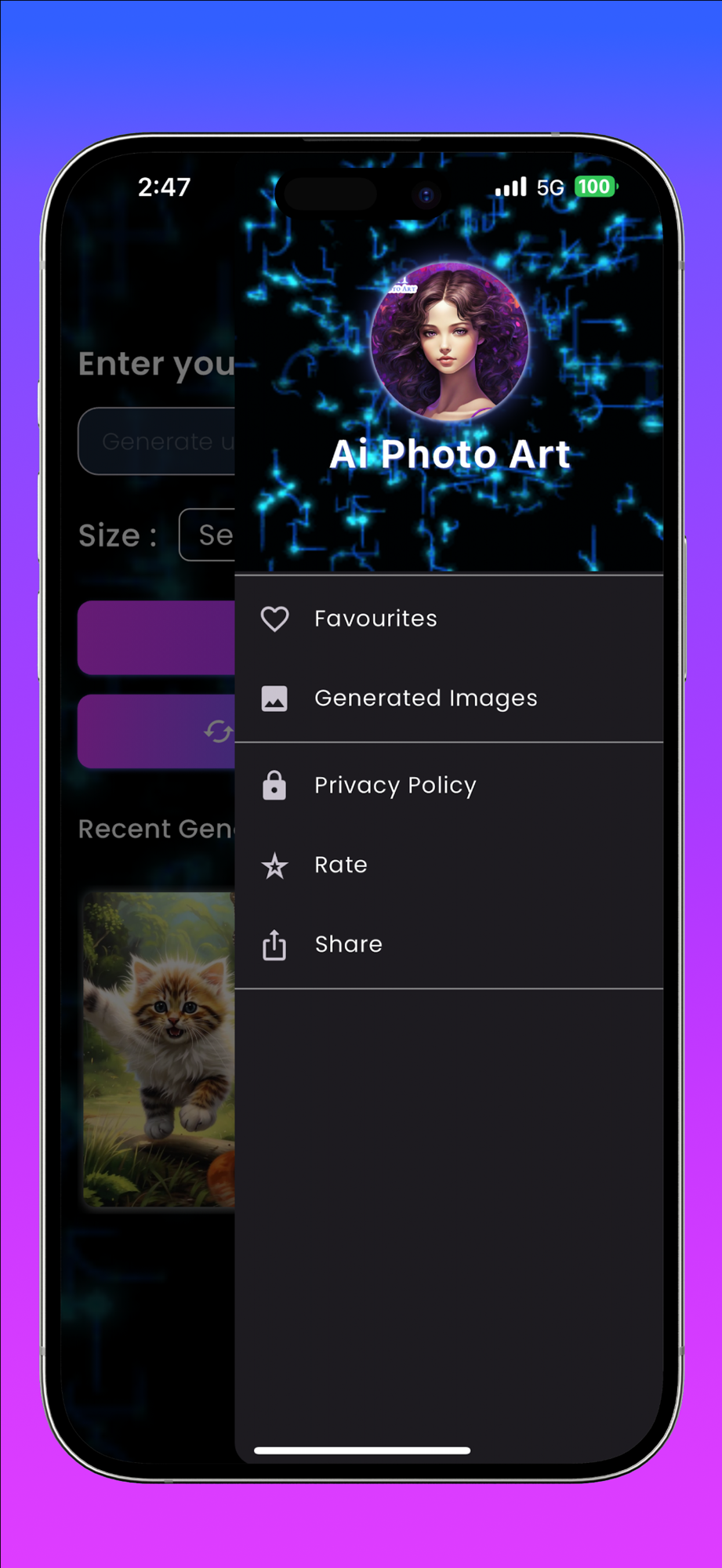 Download and Share: Effortlessly save your AI-generated art to your photo library, gallery, or albums. Share your creations with the world on social platforms, showcasing your artistic flair.